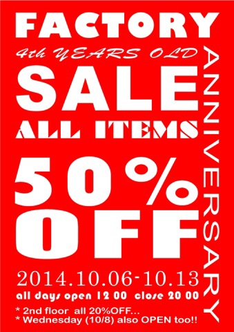お久しぶりです。 アメリカ帰国後、セール、アイスマーケット、ソーシャルタワーマーケット、博多出張と、、イベントが続いていました。 気がつくと10月もあと2日です。 ファクトリーを体で感じています。。。安井です。 10月2 […]
