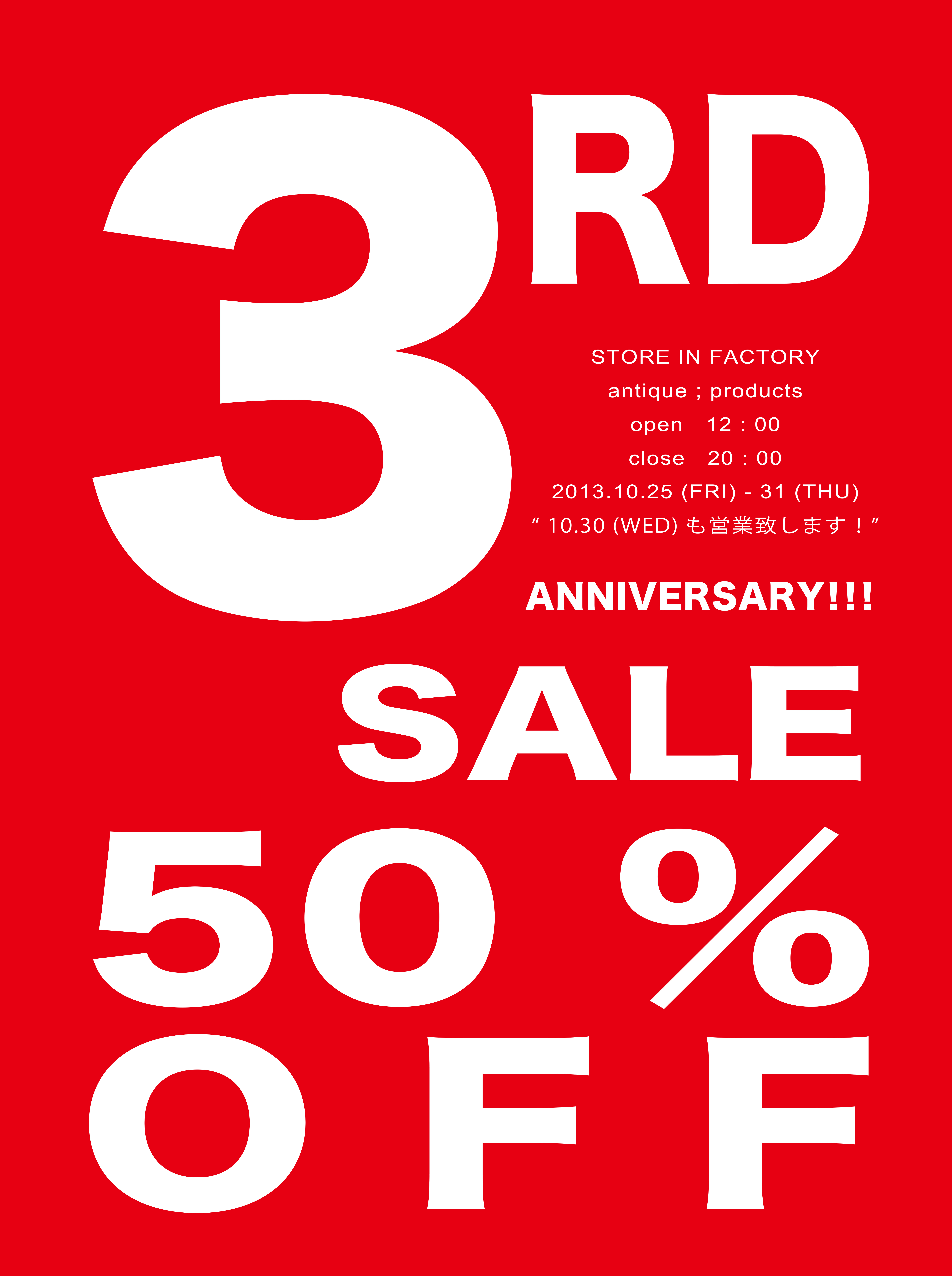 こんばんは、加藤です。 STORE IN FACTORYは9月30日をもちまして2周年を迎えました! ありがとうございます! 感謝の気持ちを込めまして。。 私個人としては、ファクトリーに入り8ヶ月が過ぎました。 この8ヶ […]