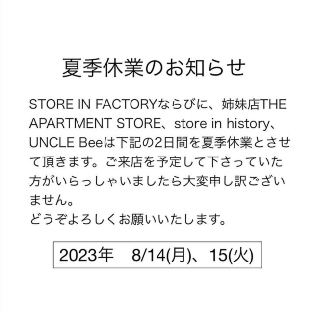 STORE IN FACTORYのモノたちの一部をオンラインストアでもご覧いただけます! ↓↓ ↓↓ ↓↓ ↓↓ ↓↓ ↓↓ ↓↓ ↓↓ ↓↓ STORE IN FACTO […]