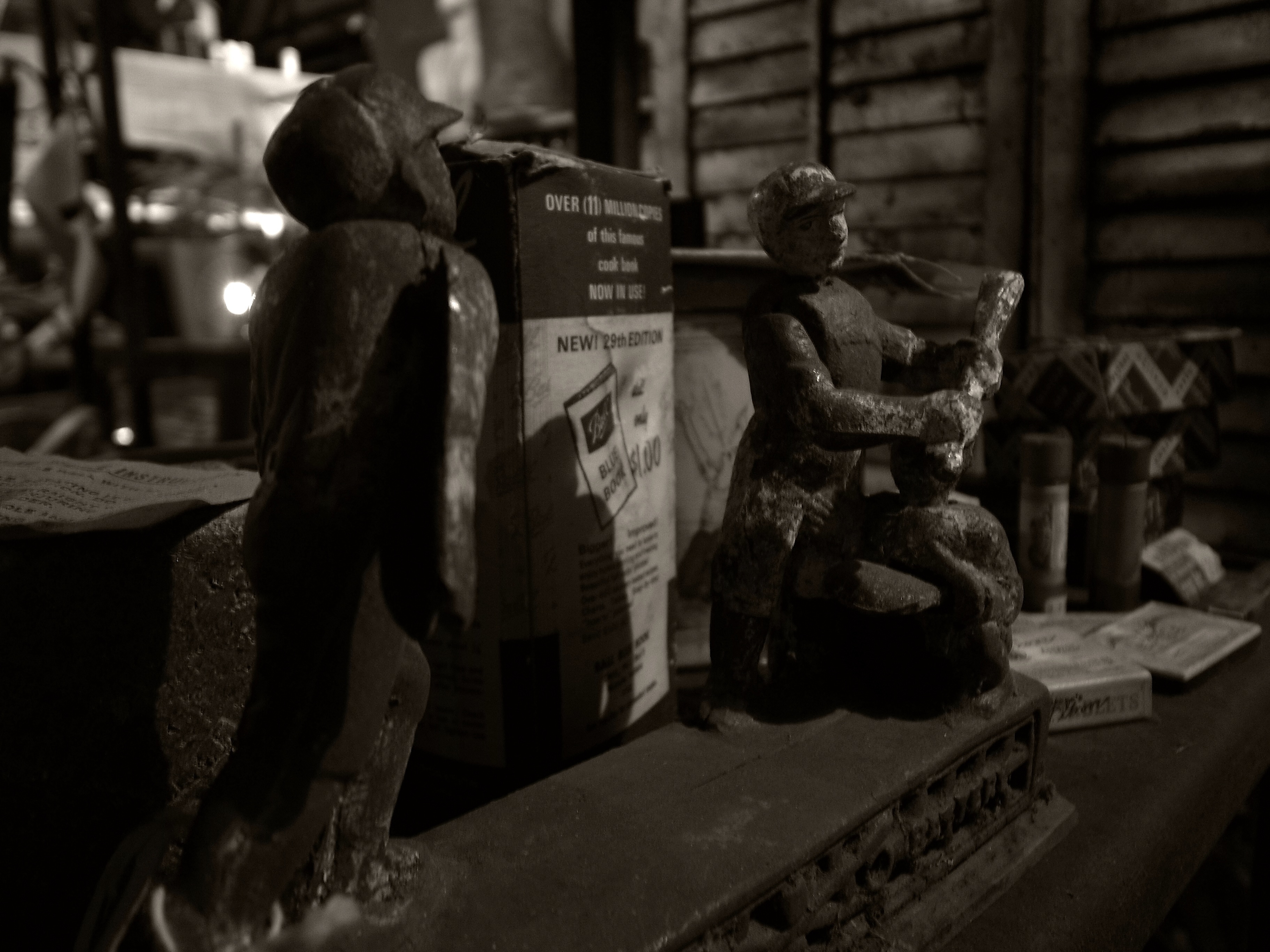 写真に写っている一部の物はTRICK BANKという貯金箱らしく、コインを投げたり、犬が咥えたりしてコインを穴に入れる物みたいです。