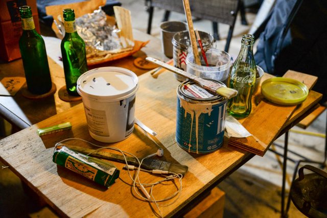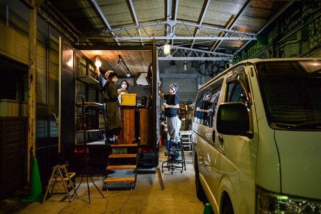 トラックの看板ともなる外装についてどうするかの打ち合わせから、実際のペイント作業やディスプレイ作業と、夜遅くまで作業は続きましたが、なんだか賑やかでいい時間でした。