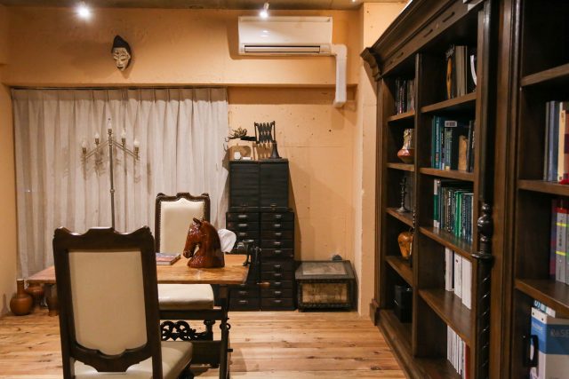 THEATRE・高木さんの私物が入り、さらに見応えある本棚になっていました。