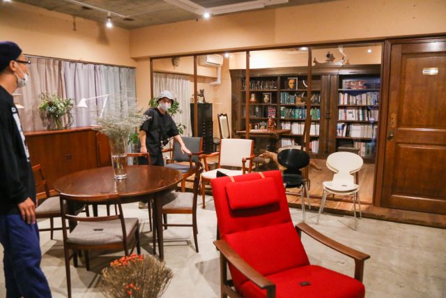 内装の照明類や雑貨、ラグなど、ファクトリーのアンティークを使用していただいています。
