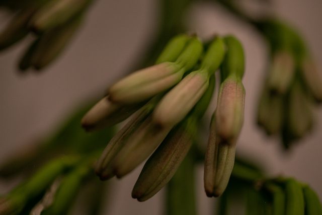 近くで見ると、小指の指先を細くしたようなサイズの蕾から、