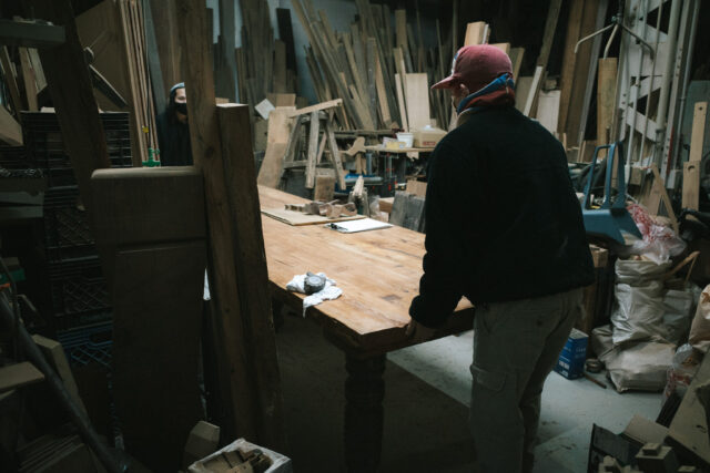 STORE IN FACTORYにある古材やコレクションしている材料を組み合わせることで、オリジナルのプロダクトを製作しています。