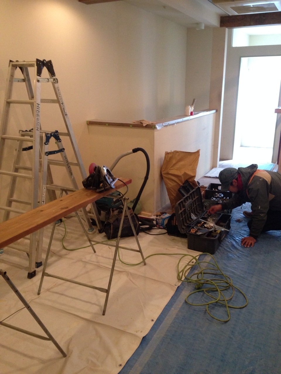 只今、原と安井は東京で泊まり込みで内装作業中です!