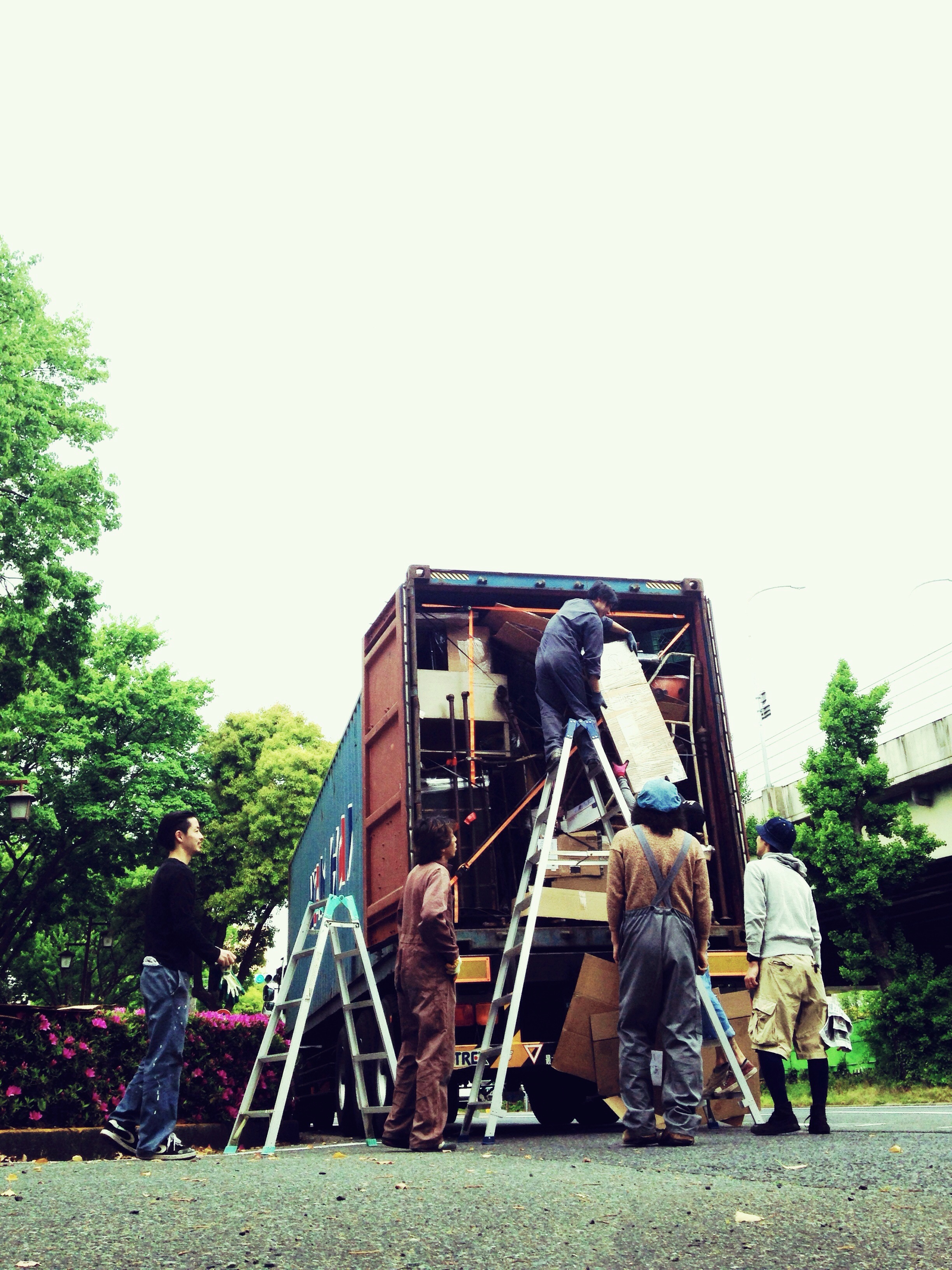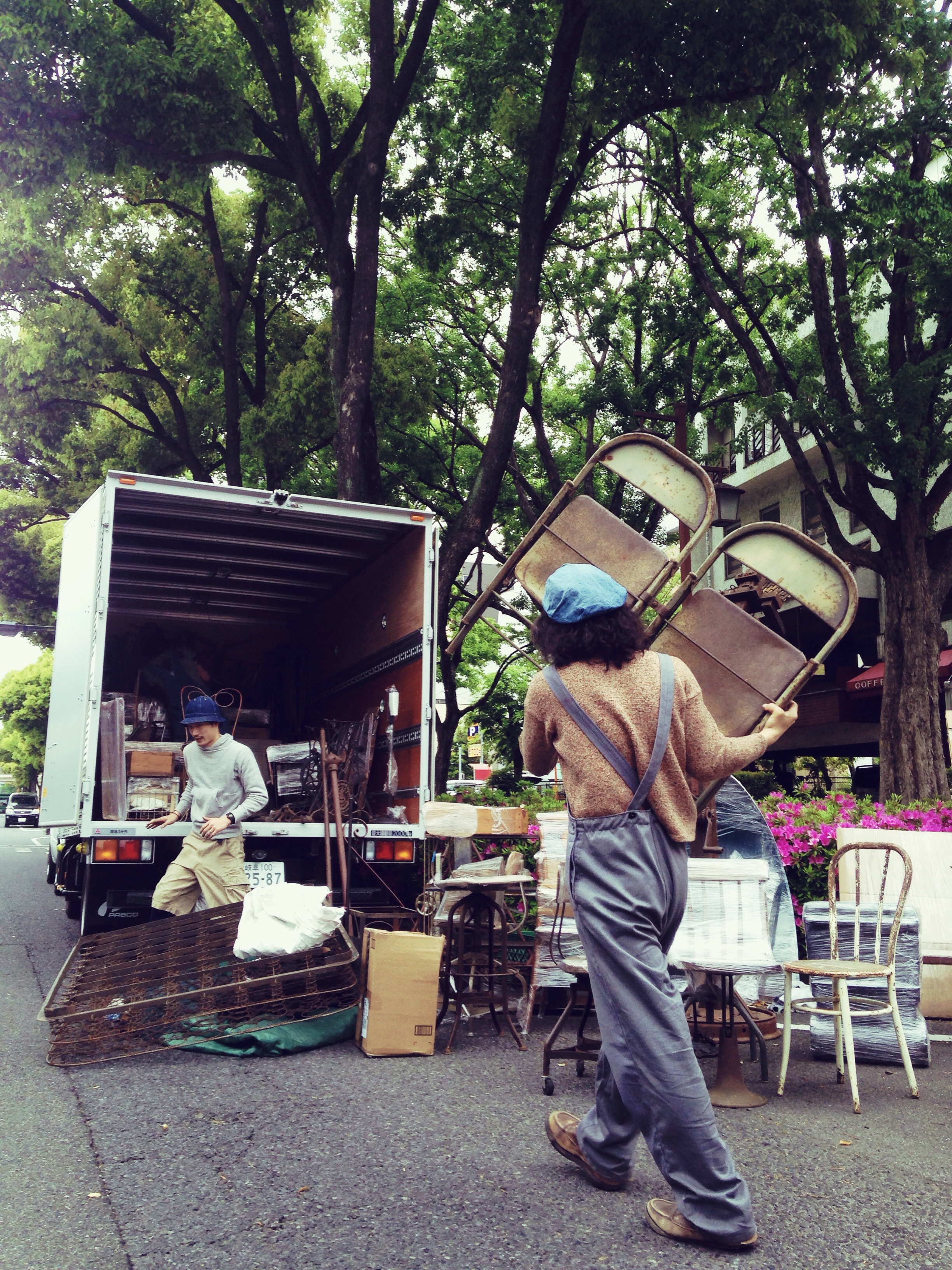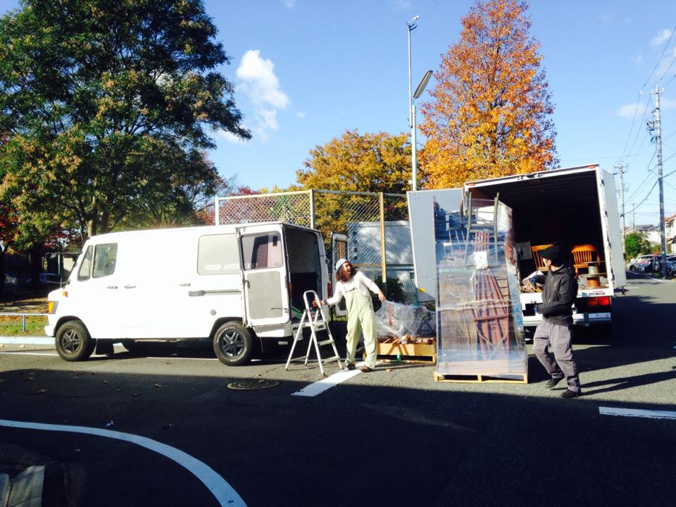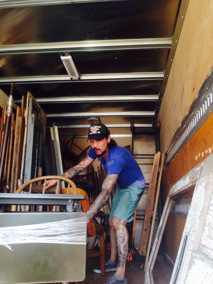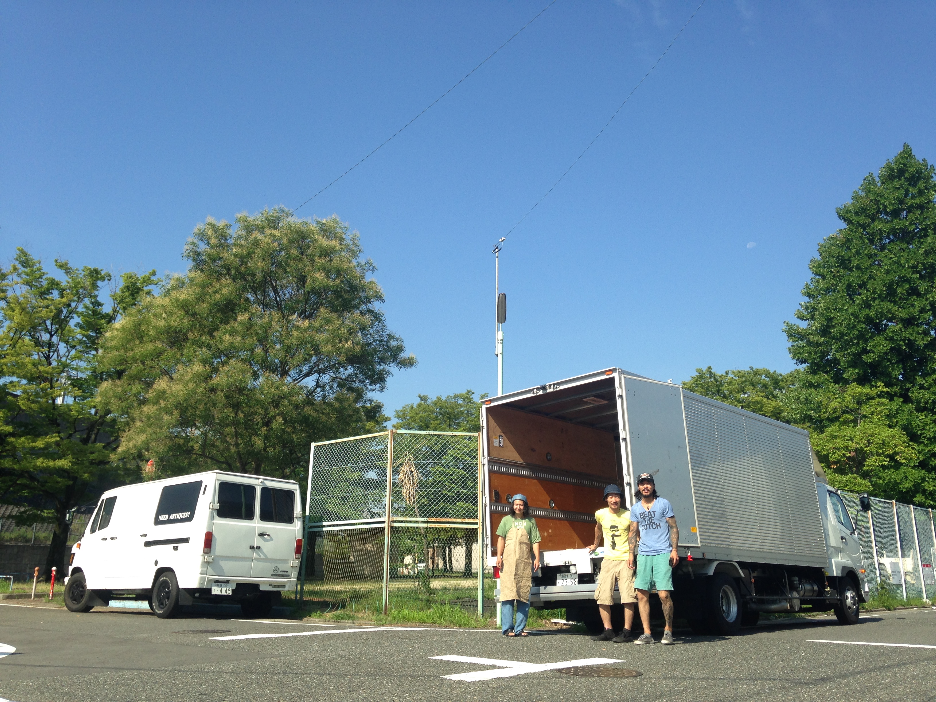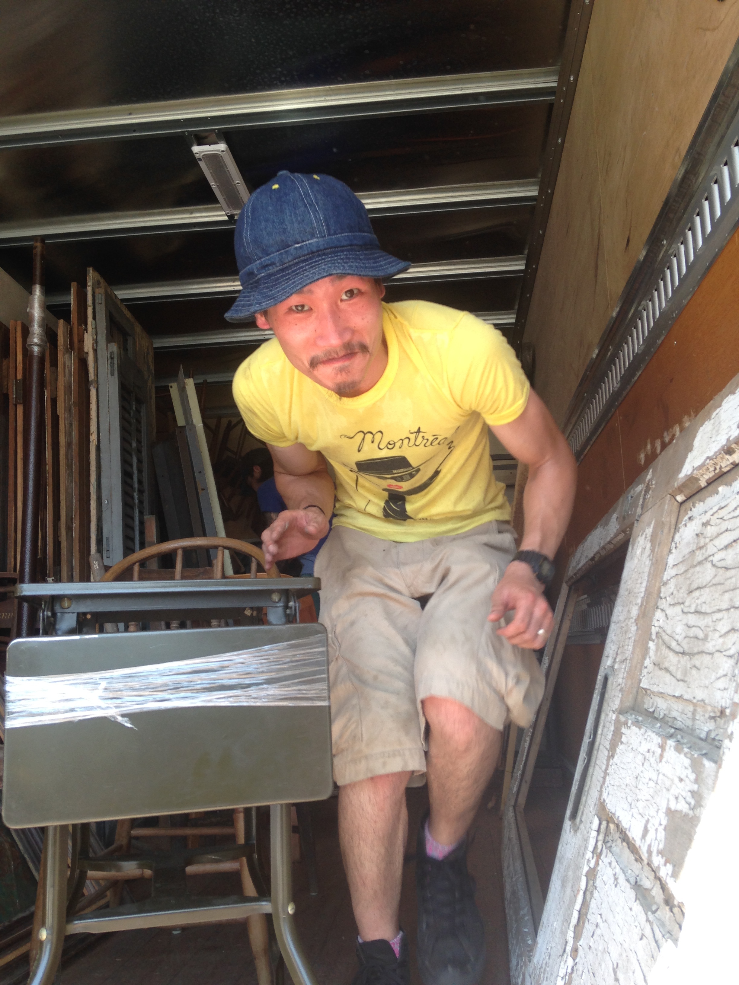 博多のイベントでお世話になった、九州のアンティークショップ EARLY BIRDのお二人が新店舗に使う古材を名古屋まで運んで来てくれました。
