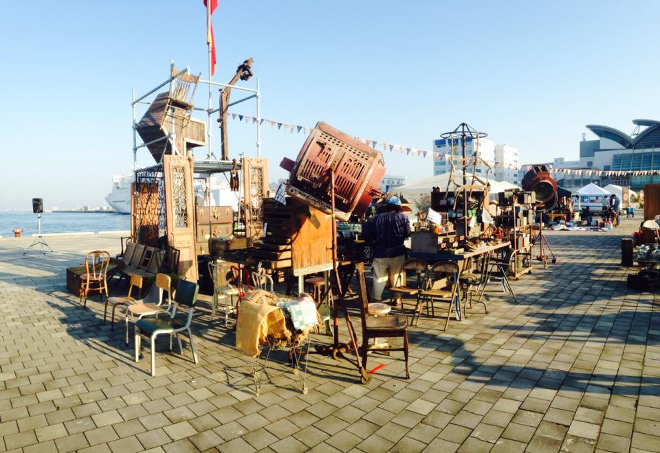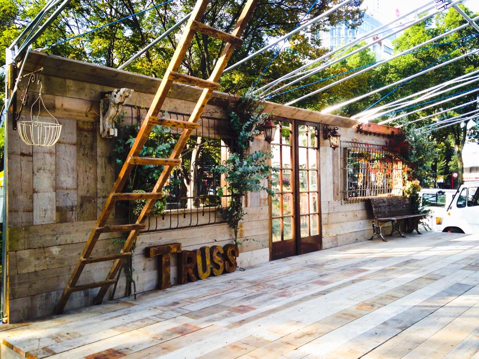 前回まで出店していたソーシャルタワーマーケットのライブステージを製作させていただきました。植栽はいつかご一緒させていただきたいと思っていたPEU CONNUさんにお願いさせていただきました。