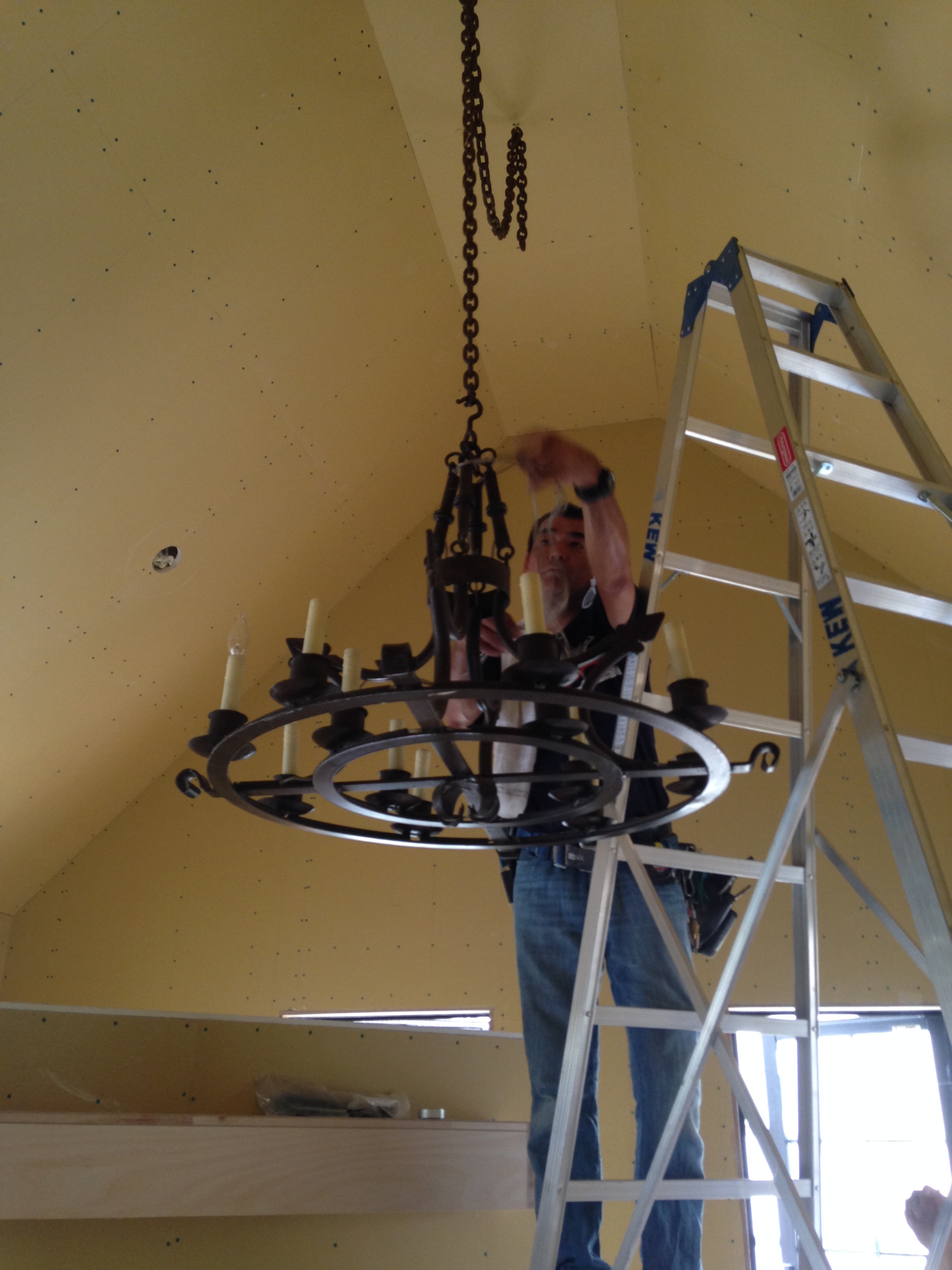 その弟の勤めるパパママハウスさんのモデルハウスに特大のシャンデリアを納品させていただきました。