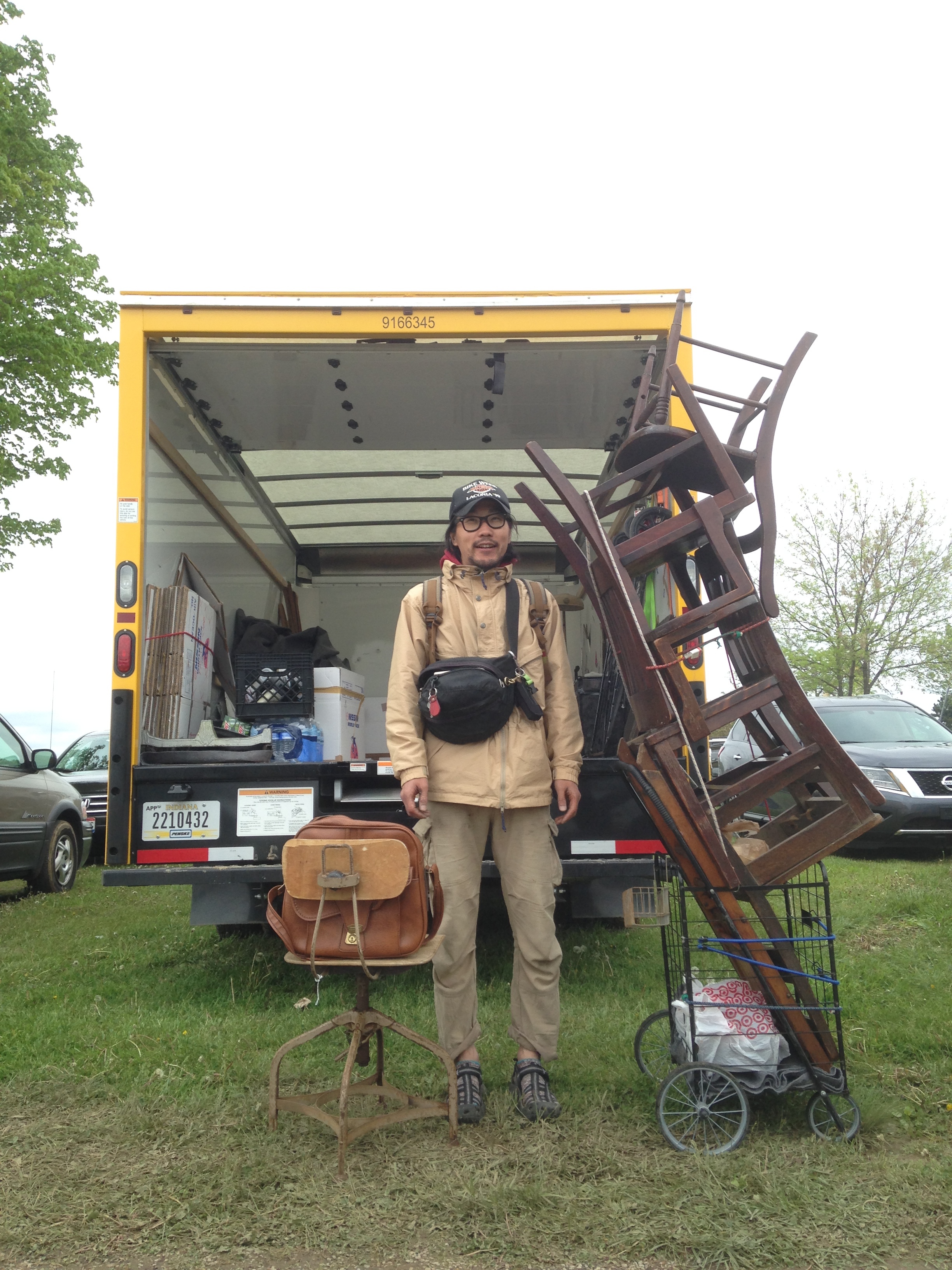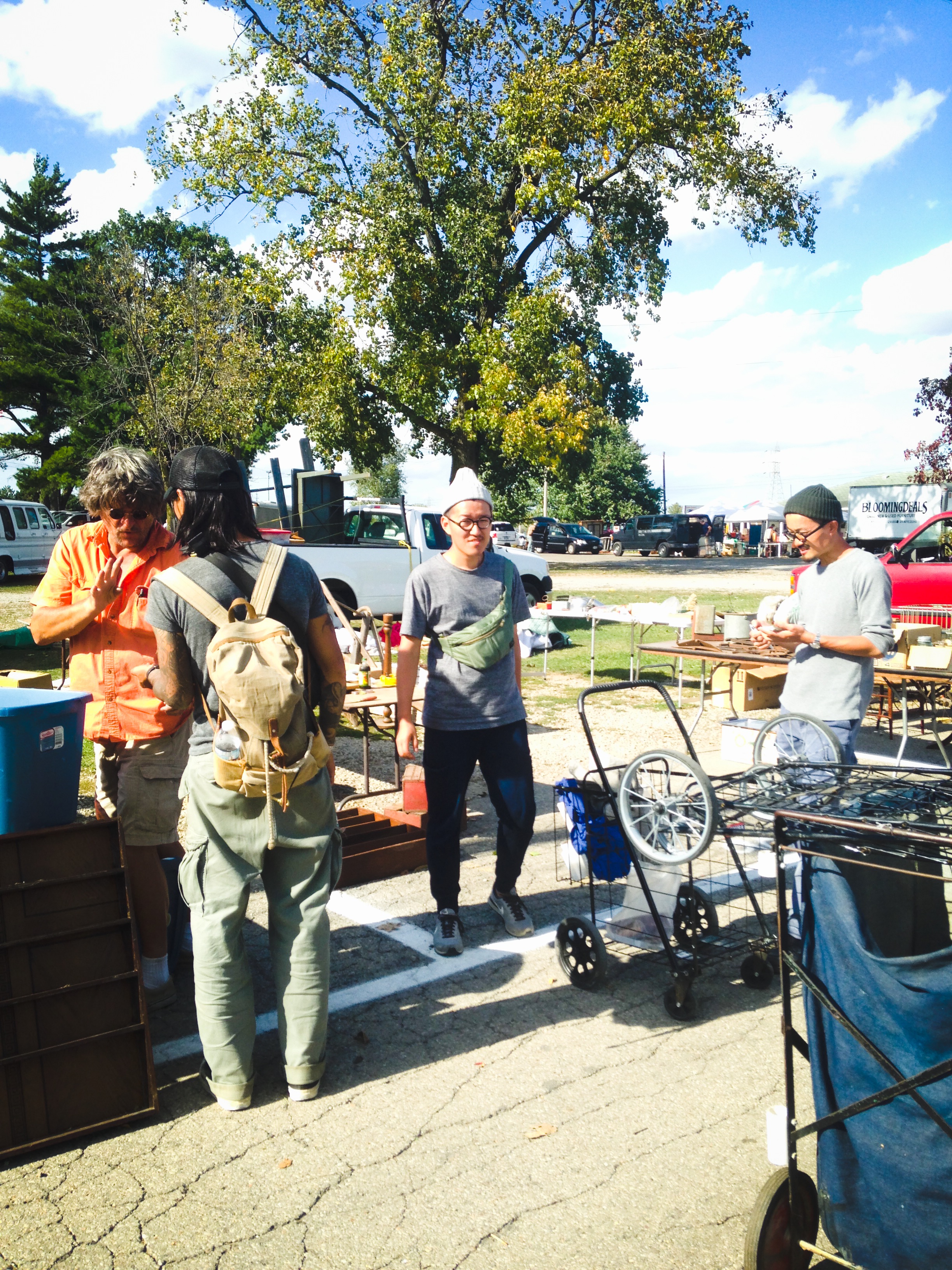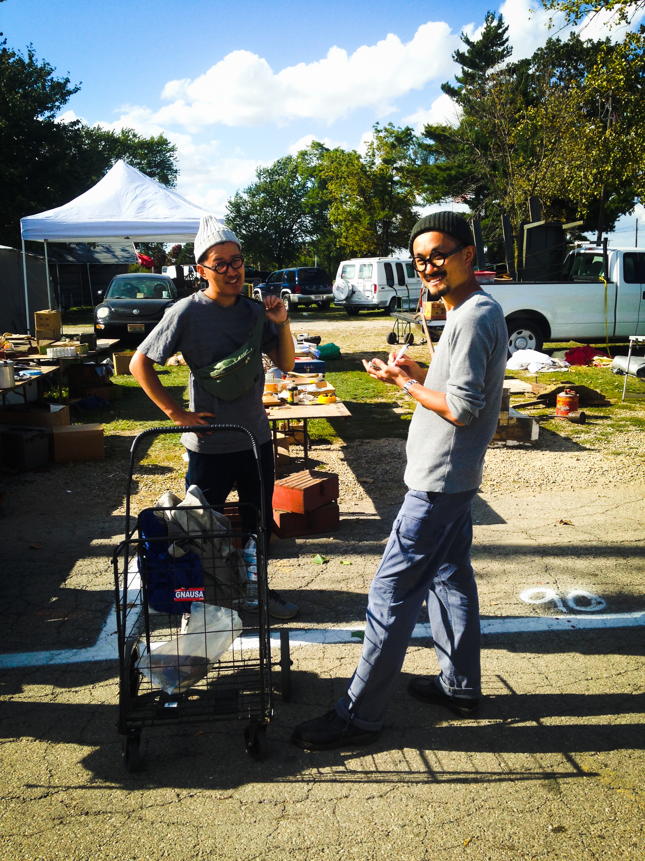 中村さんの展示を見に、懐かしい友達が来てくれました。ファクトリーを始めたばっかりの頃、一緒にイベント出店や、遠方での買い出しを一緒にした質環のブンタです。僕はブンタの考え方や、古物に対する考え方が大好きです。