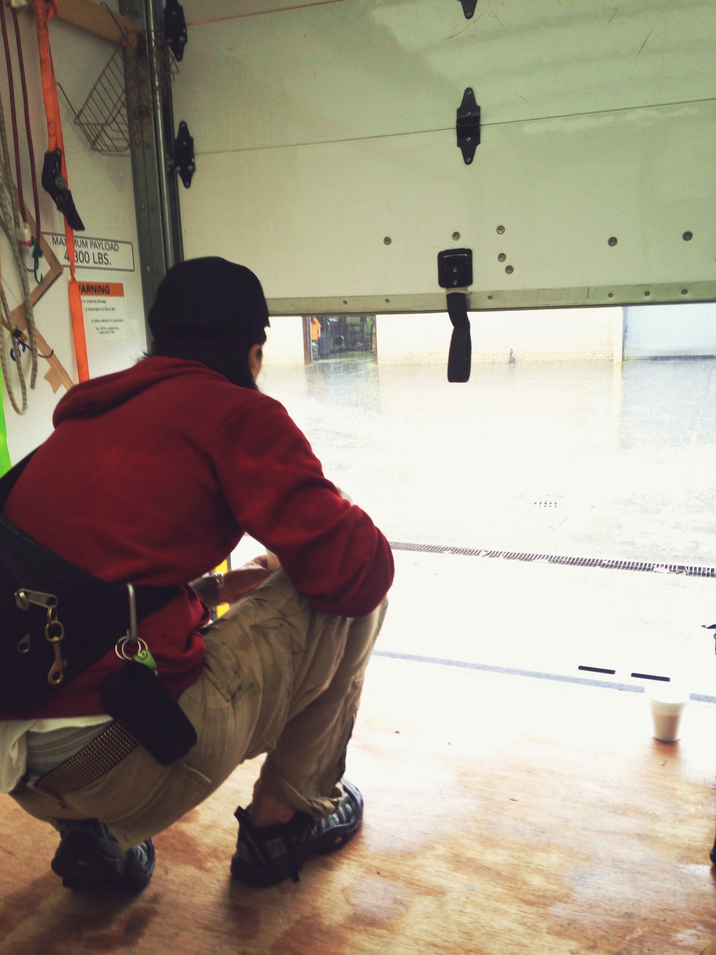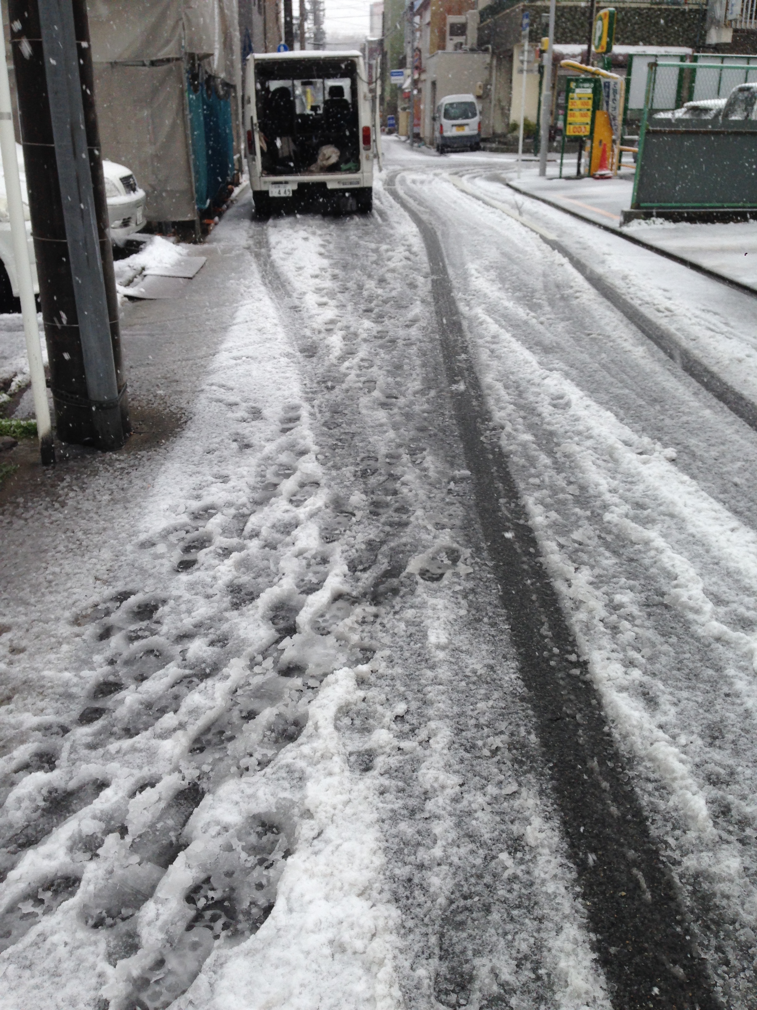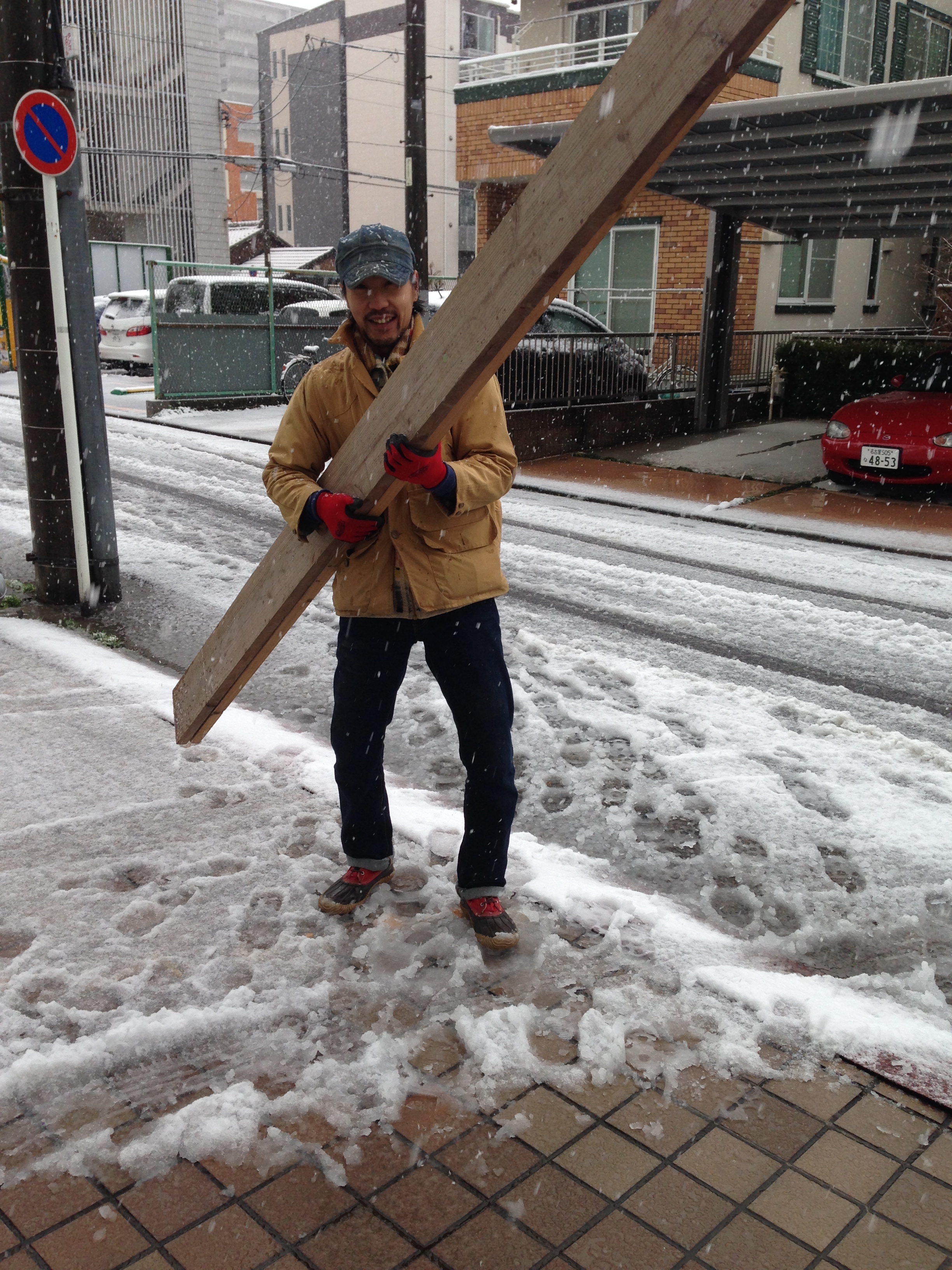 雪の降る中での納品。階段で足場板を沢山運びました。。。