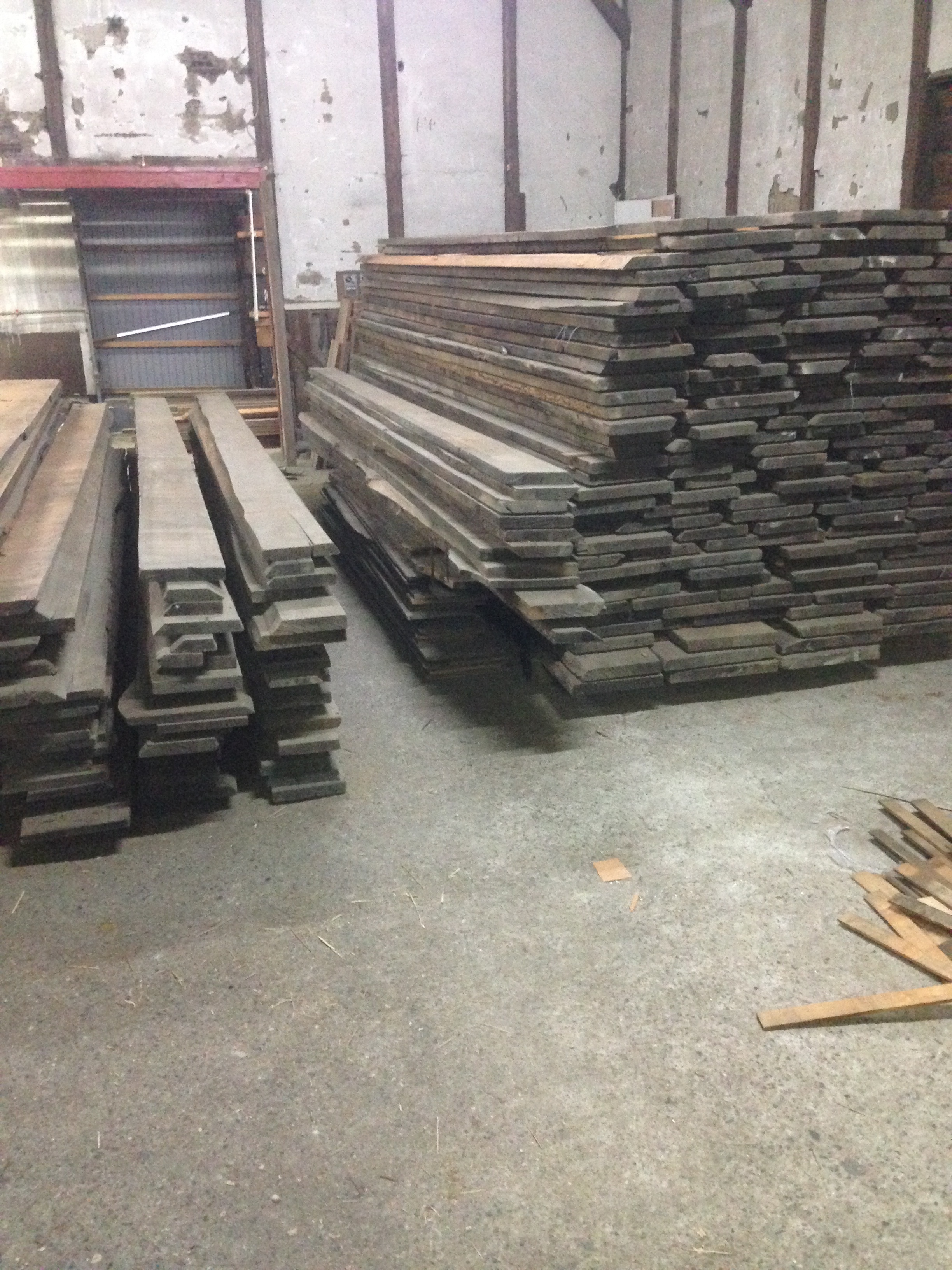 トラスでの製作をスタートするにあたり、4トントラック3往復分の古材を買い付けました。この仕入れは本当に大変でした。。。