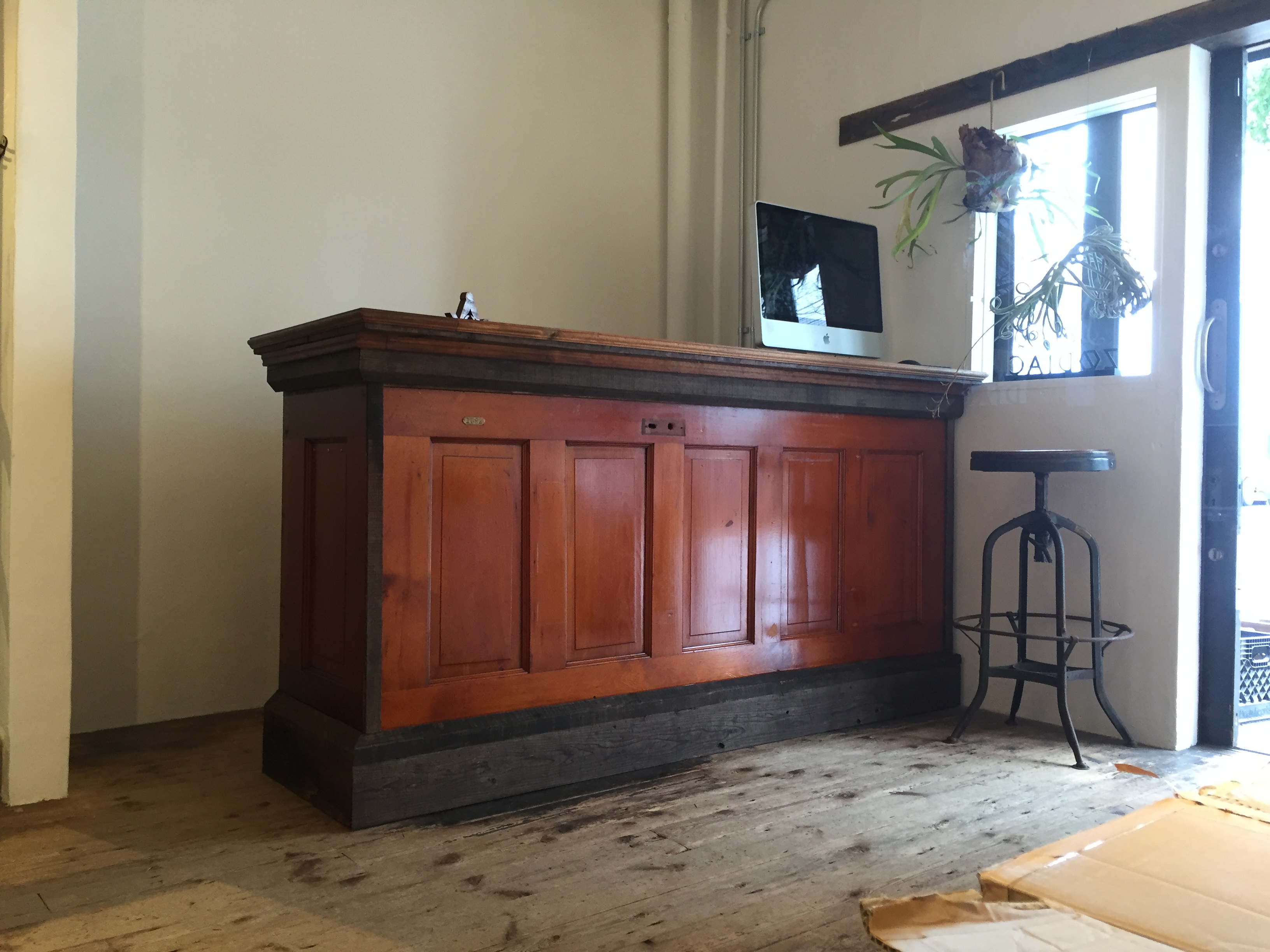 今まで自分たちのお店の改装は全て僕が企画していましたが、今回はスタッフの金田君のプランでお店作りをしました。とても不安だったと思いますが、家具の製作も一人でこなし本当に頑張って形にしてくれました。