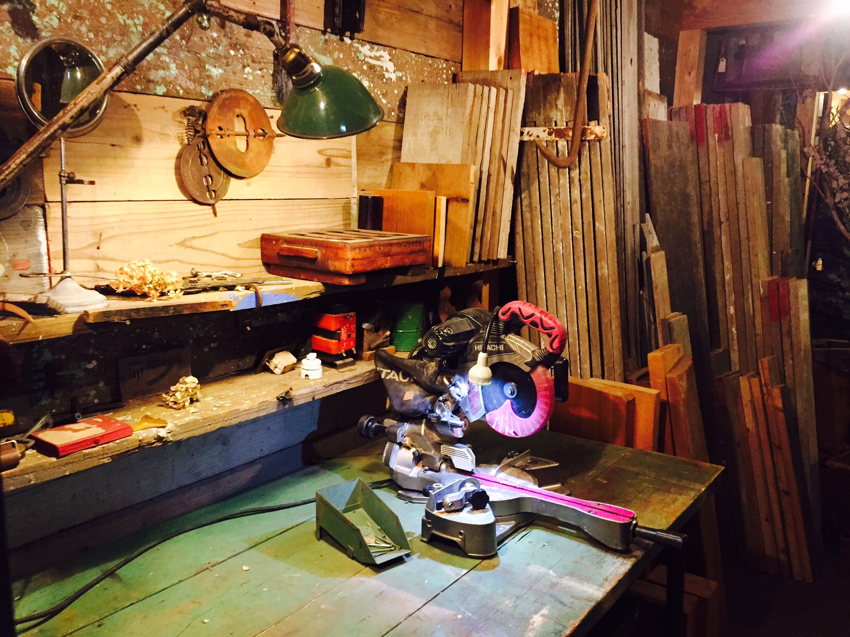 それまで使っていた押し切りは、ファクトリーの古材コーナーに設置して、お店で古材のカットが可能になりました!