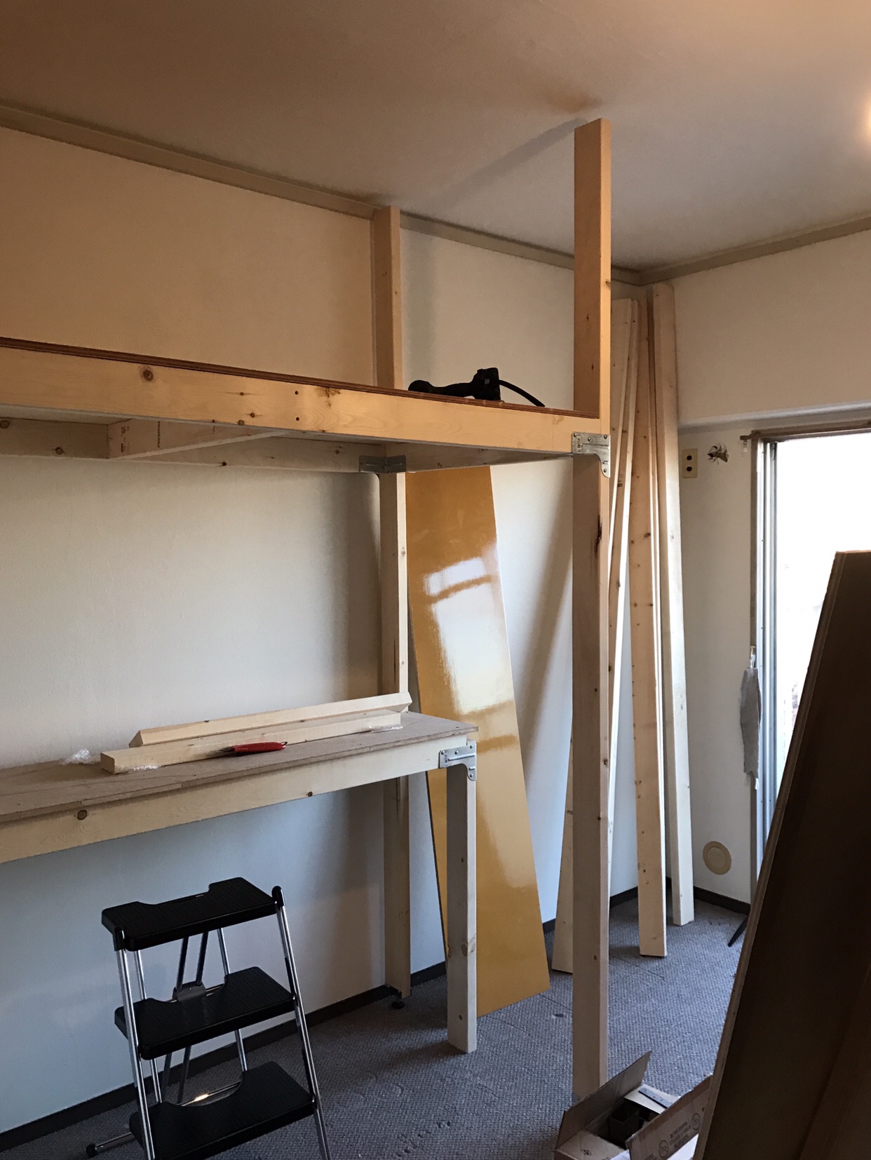 おやすみの日には、ずっと後回しにしてしまっていた自宅の納戸の棚を妻と一緒に作りました!