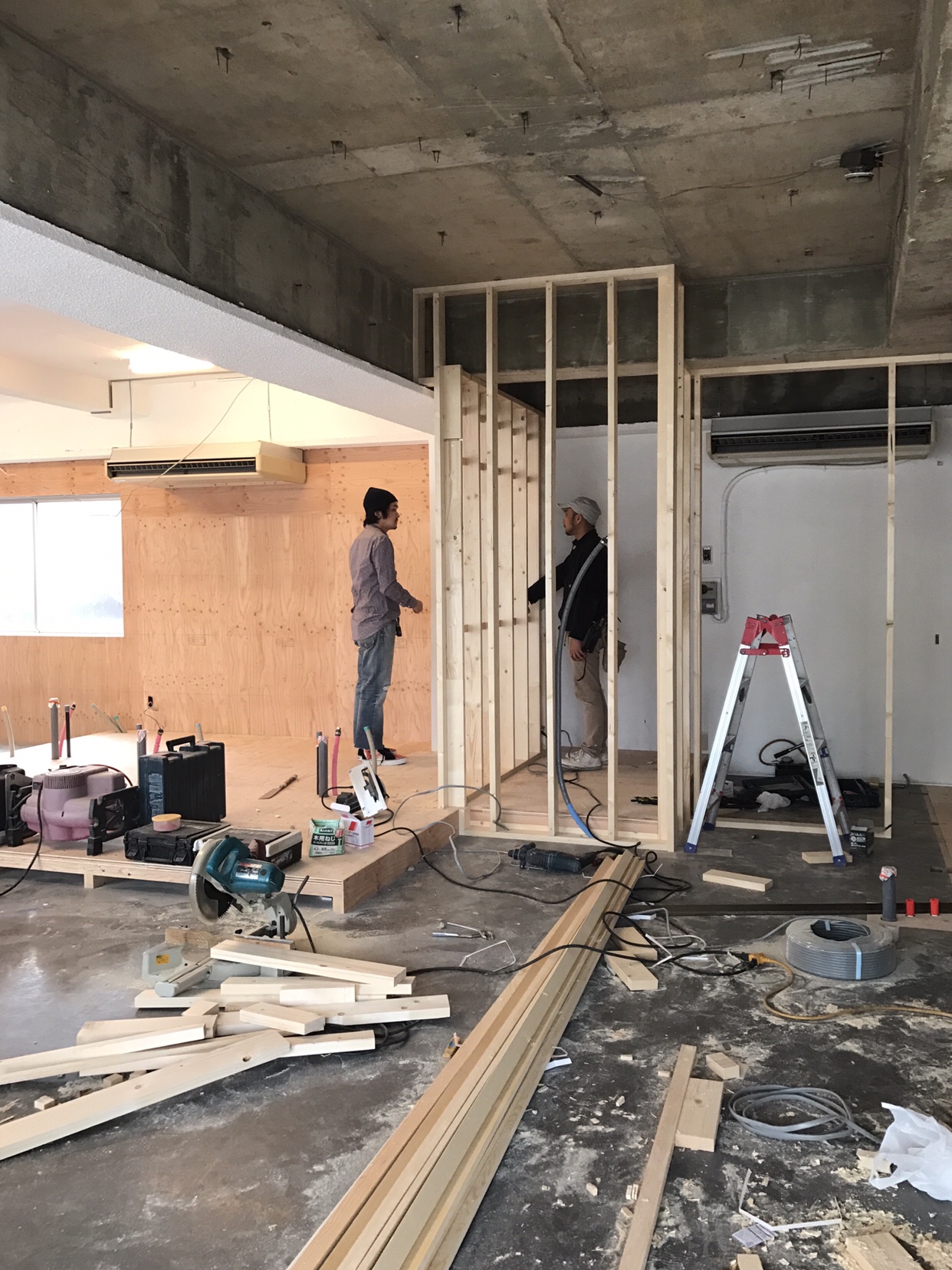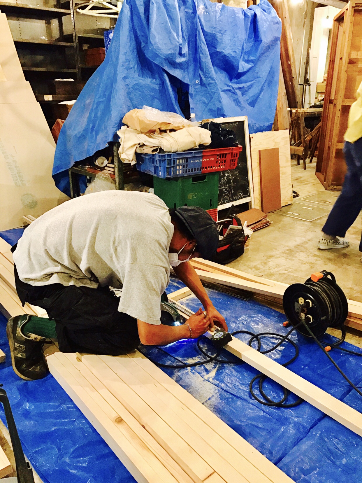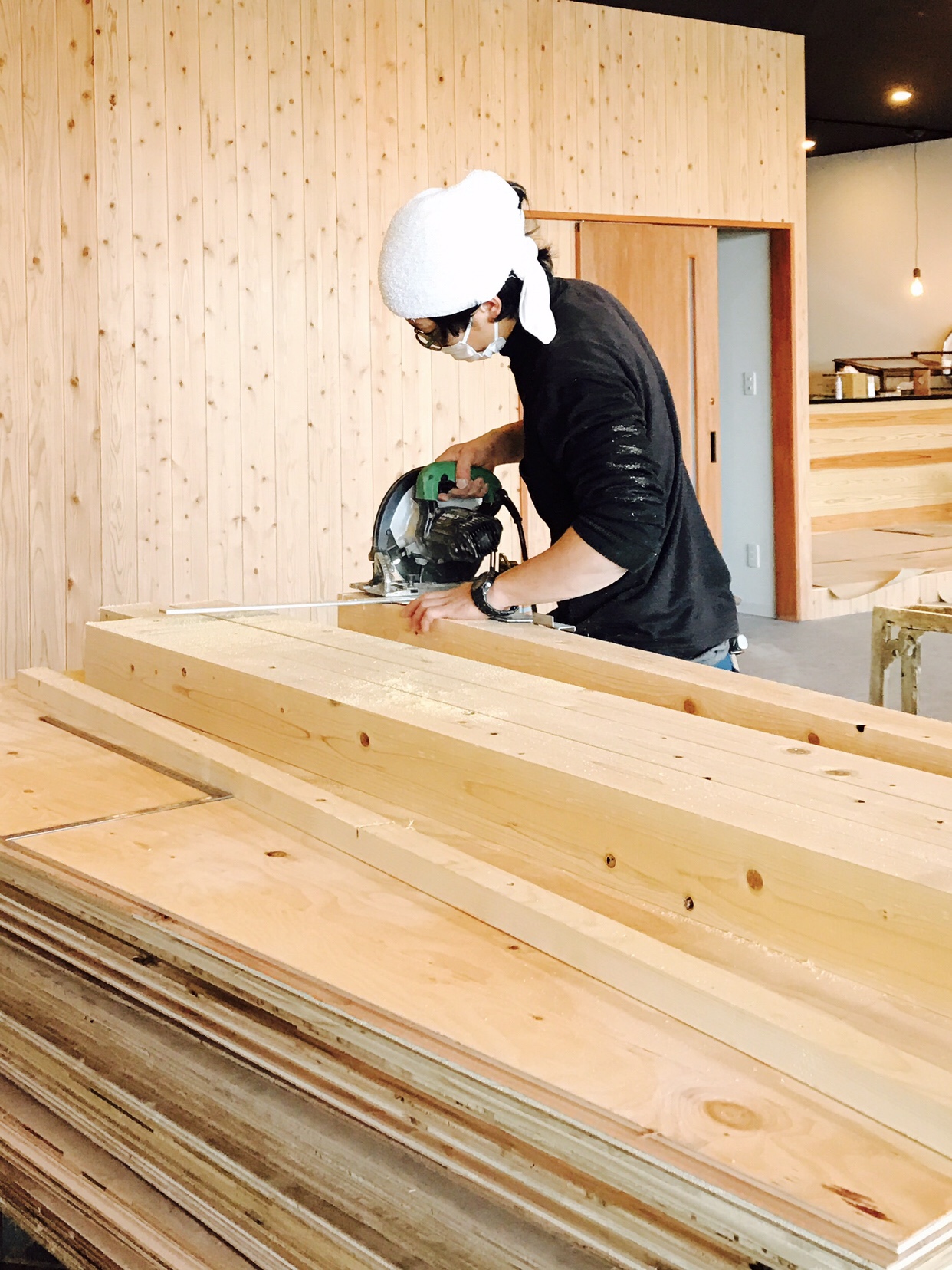 今年独立した、carpentryの中野くんとの久しぶりのお仕事。7年前にファクトリーを一緒に作ってくれた本当に信頼できる大工さんです。