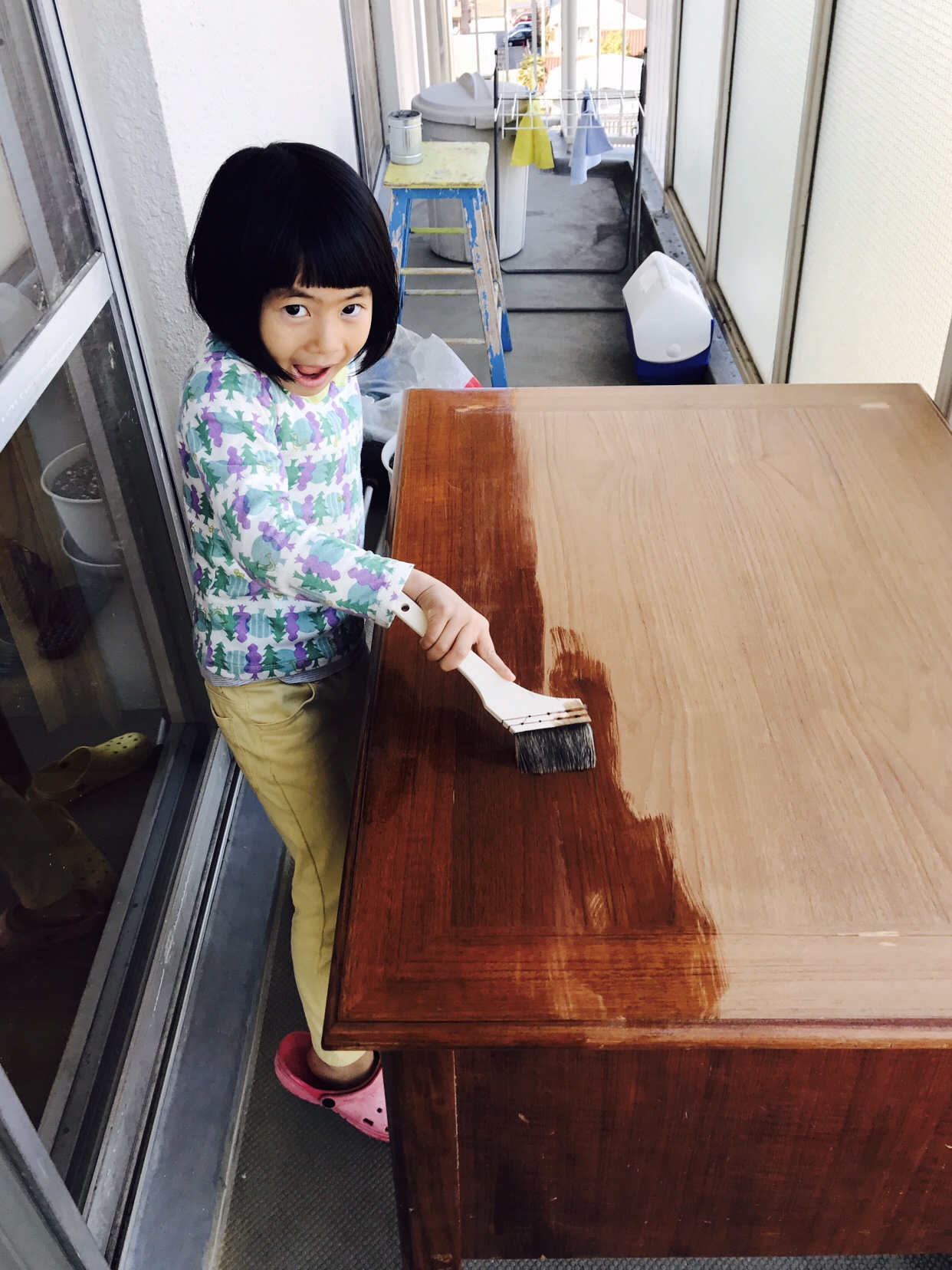 この春から小学生になる長女の学習机を、友人から譲り受けて、一緒にリペアしました。