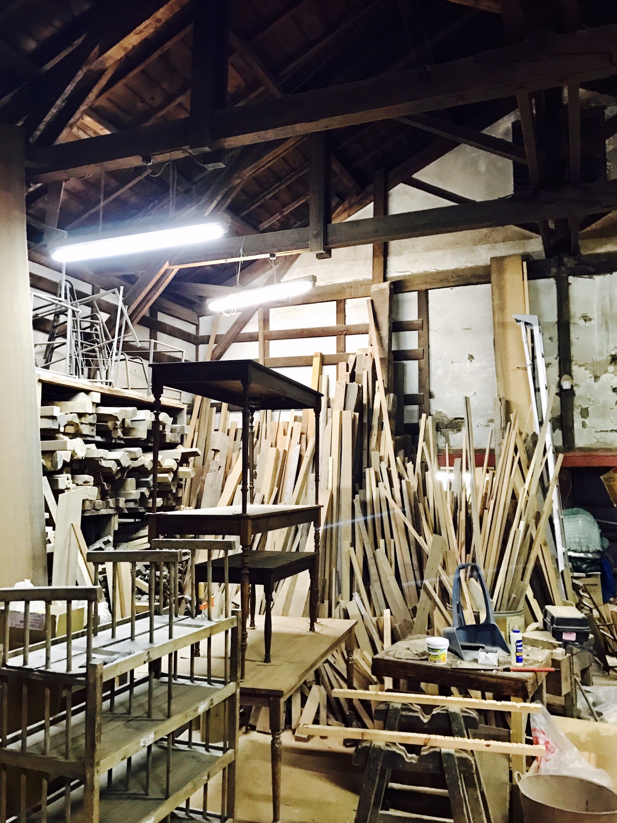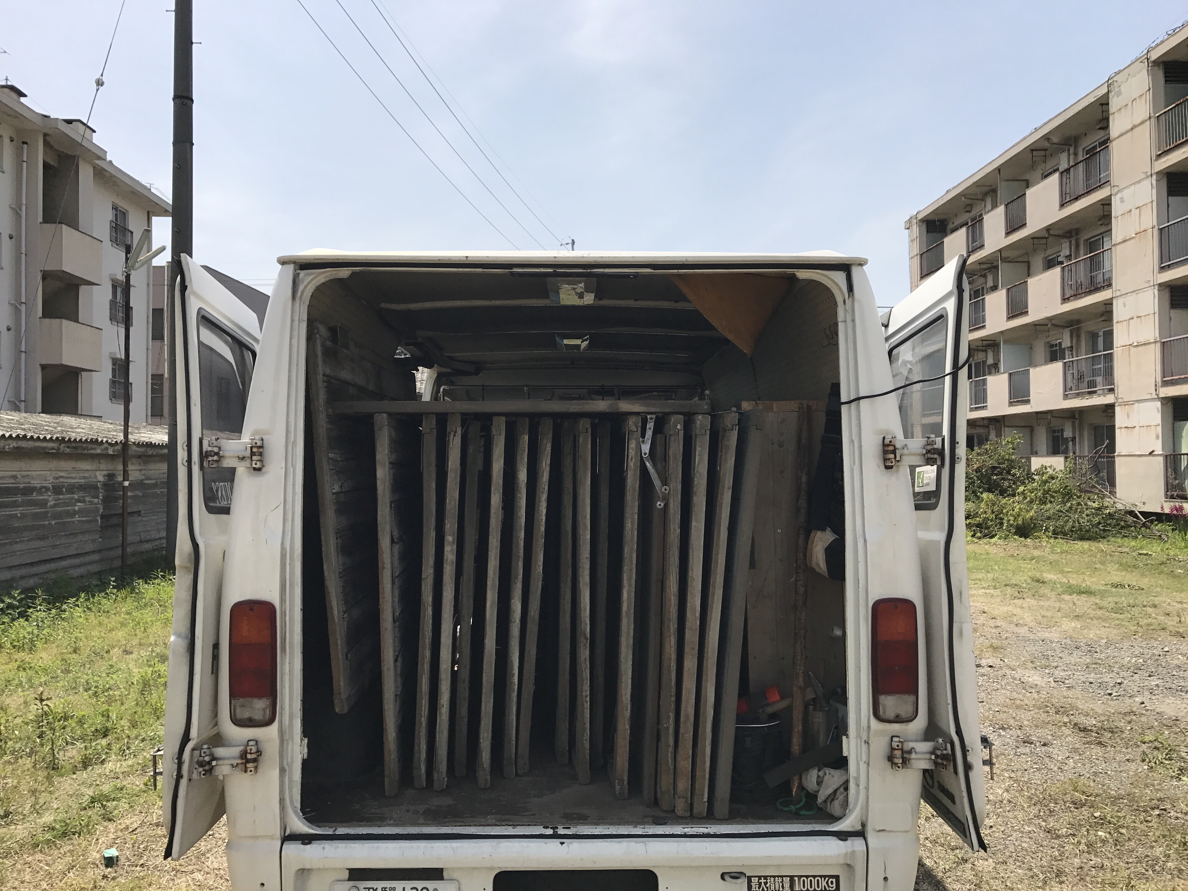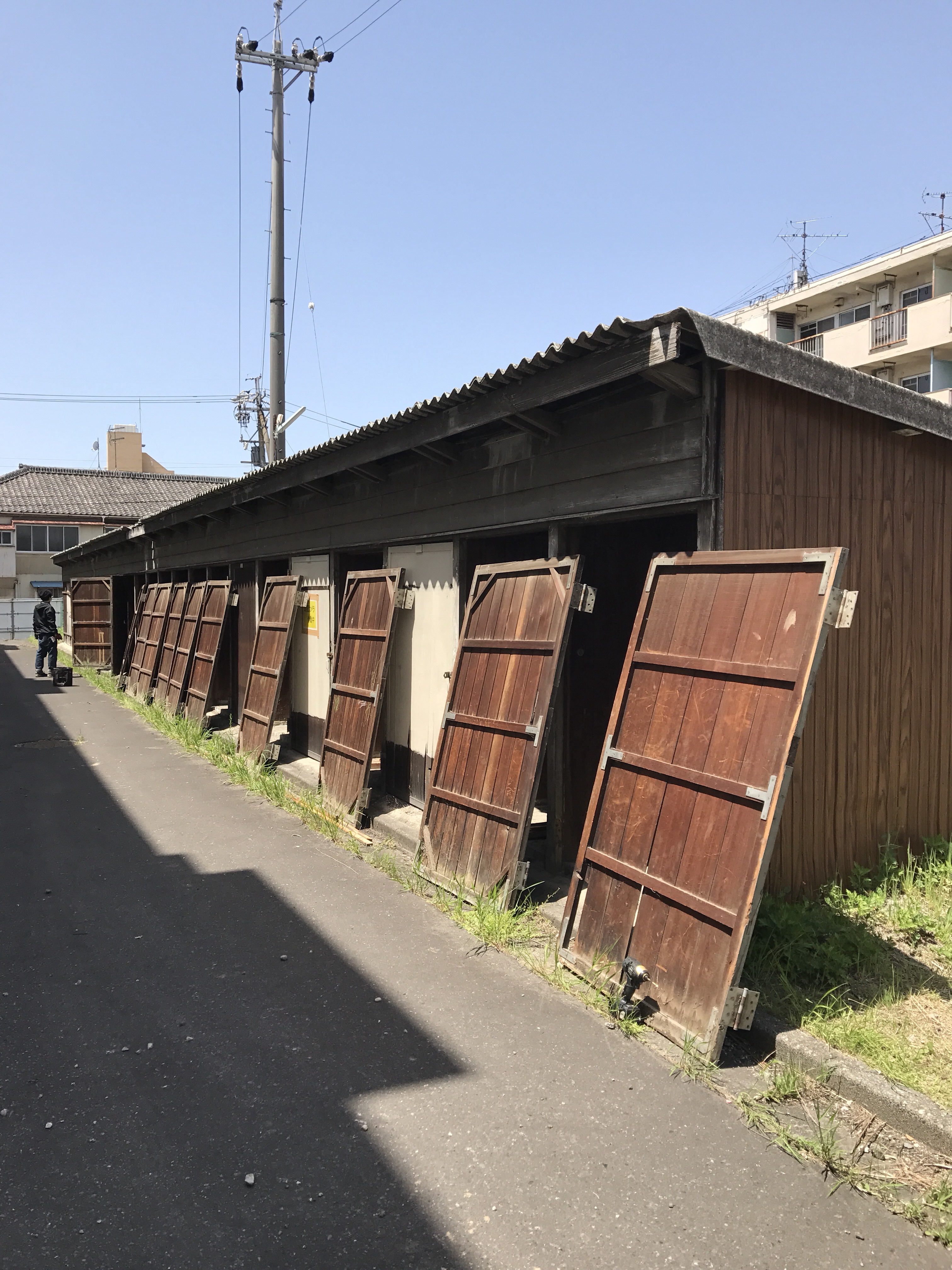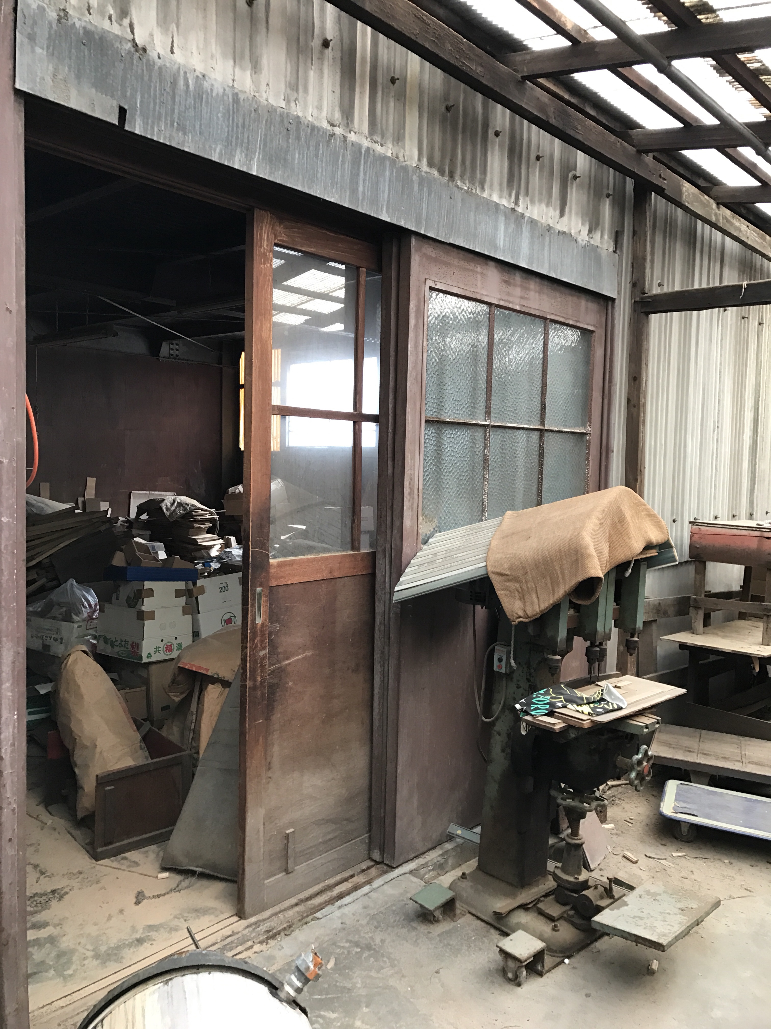 大きな社宅の古材をサルベージ。すごく良い風合いの建具がいっぱいありました。