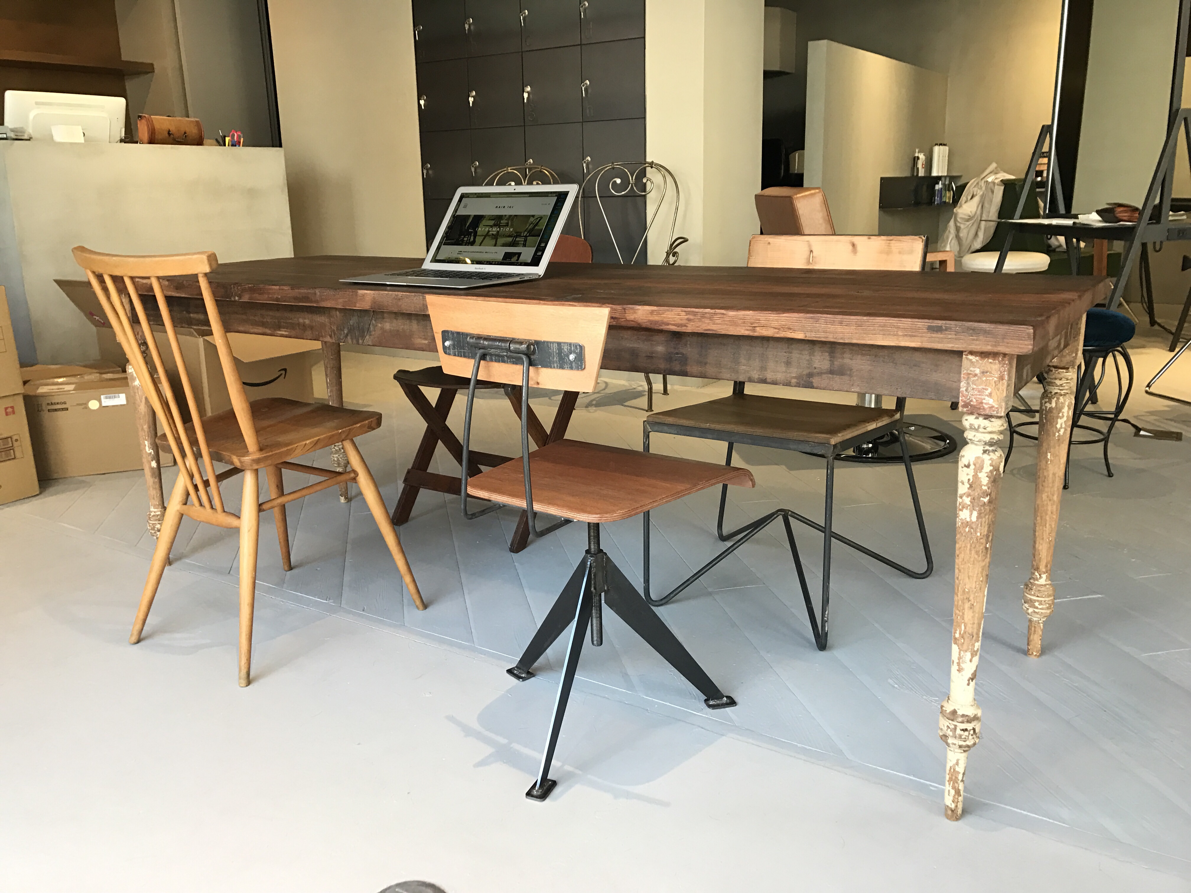 大須のHAIR ICI LUCEさんのレセプションに、ヒツジテーブルと椅子を納品させていただきました。