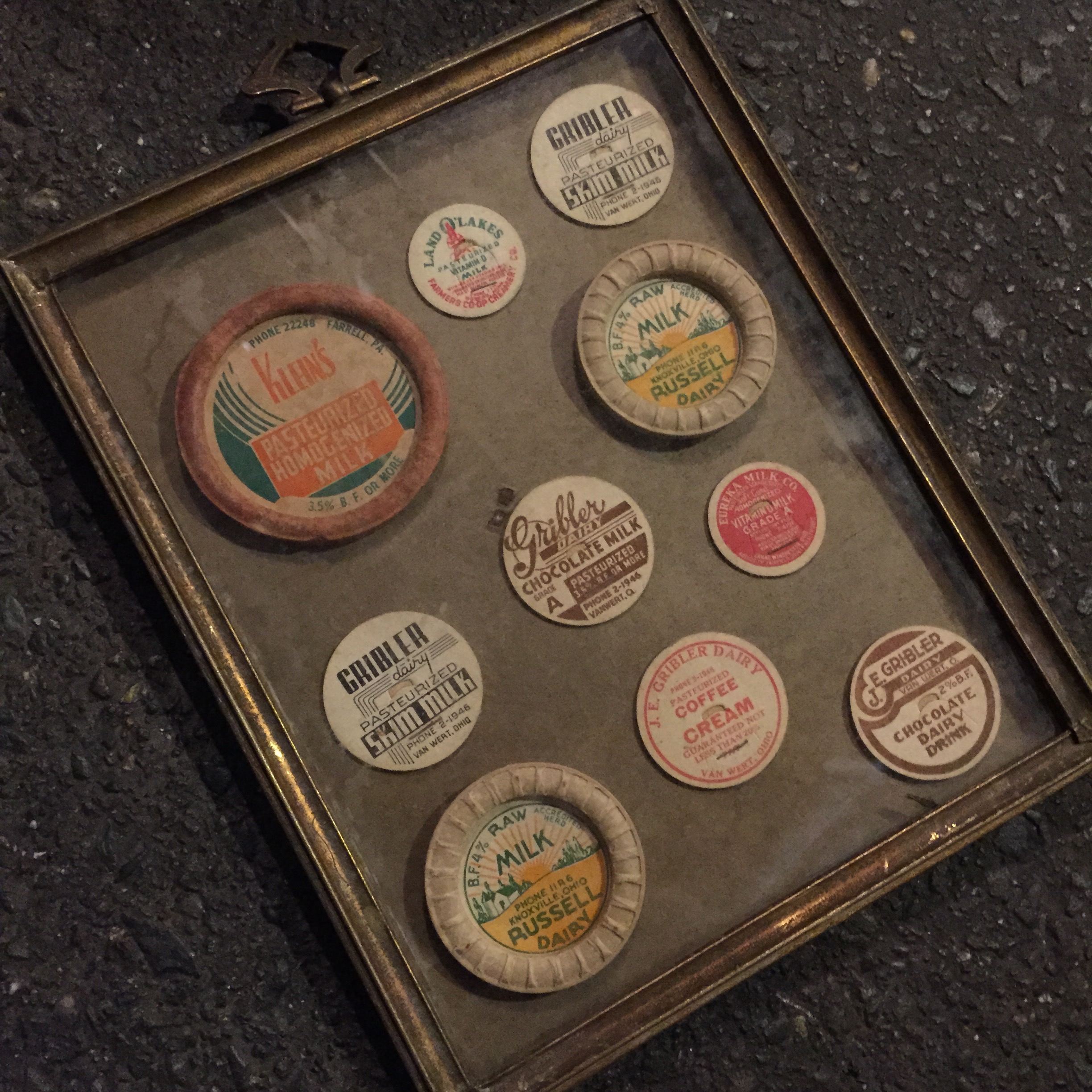 古い牛乳瓶の蓋も額に入れるだけで印象が変わります。