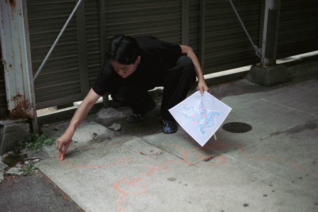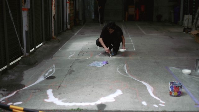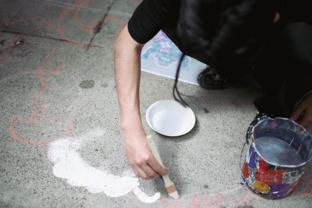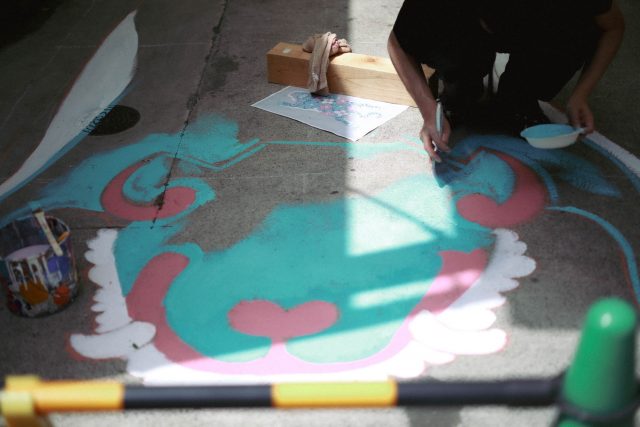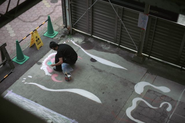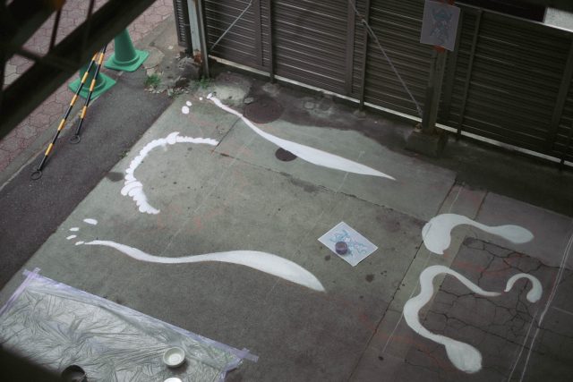 徐々にコンクリートの地面に絵が浮かび上がってきます。