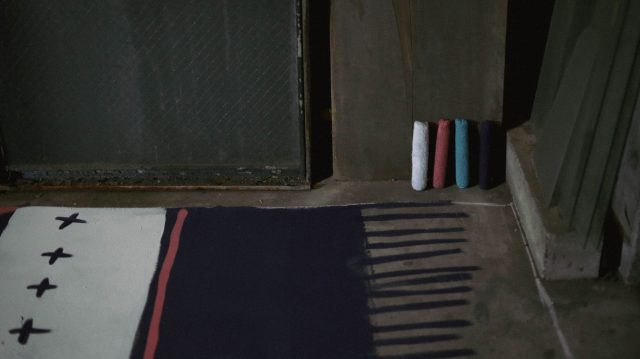 こちらはコーヒースタンドの屋外席用のラグの作画風景。