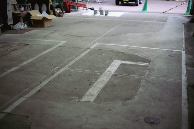 車を停める為の白枠があるのみの無機質なコンクリート床面です。