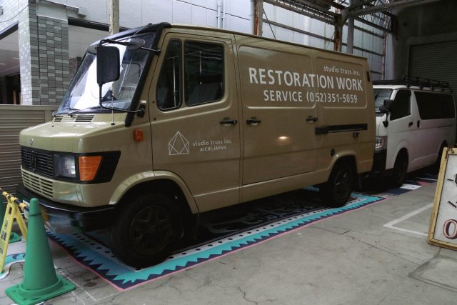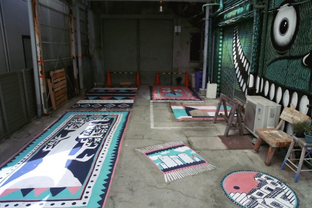 今回はここに、いろんな国のラグの絵をイナさんに描いていただき、絵のラグの上に車を駐車し、絵のラグの上でカフェタイムを楽しむ風景が見たい!というワクワクのイメージから始まった計画です。