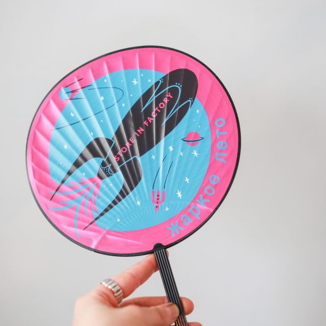 ファクトリー店内も例年通り、ぐっと気温も高くなってきたので、うちわの配布が始まっています。