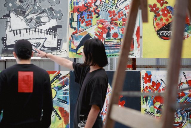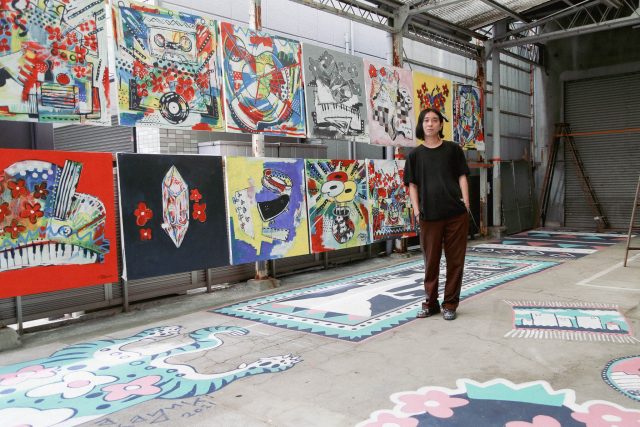 駐車場全体がイナさんの絵で埋め尽くされた圧巻の展示となりました。