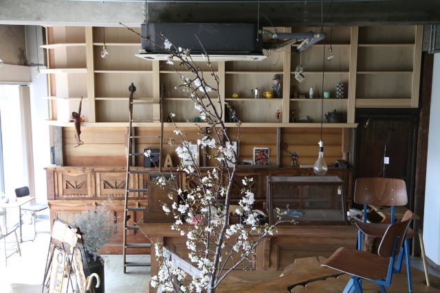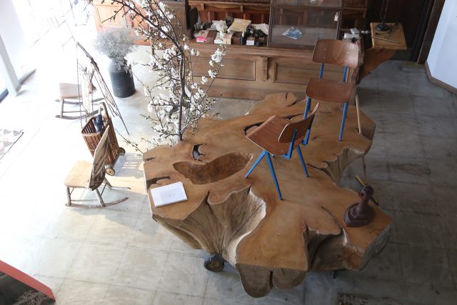 まだ大きなカウンターも無ければ、今では店内のメインテーブルになっている大きな欅の根張材テーブルも入っていなかった時の写真。