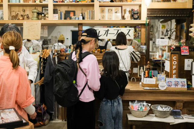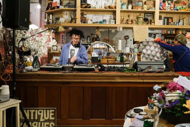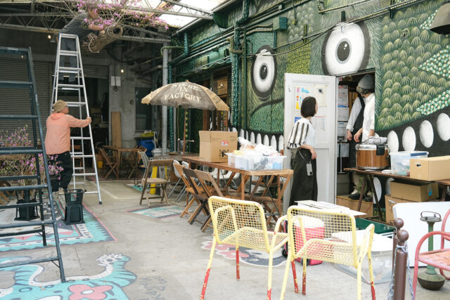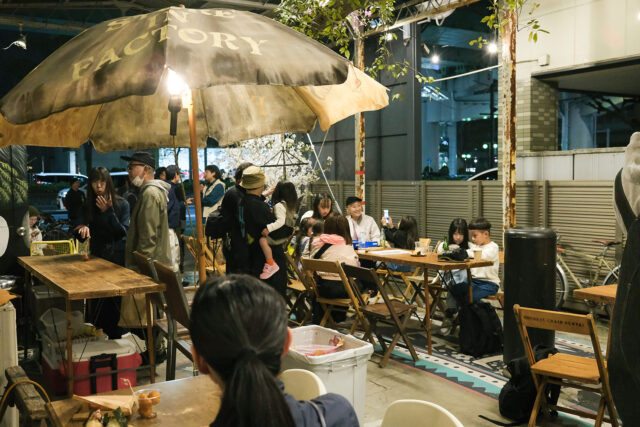 プレオープンズさんのご飯を楽しむ方、DJブースの周りで楽しそうに体を揺らしている方、外席で久しぶりにあった知り合いとの会話を楽しまれている方、2階のファクトリーでドリンク片手に古物をじっくりご覧になる方、皆さん思い思いにイベントを楽しんでくださっている様子を見て、私たちもやった意味があったなあと改めて思いました。