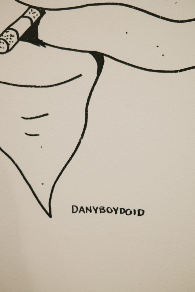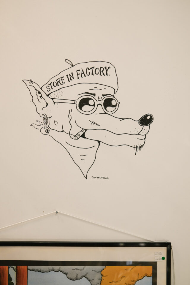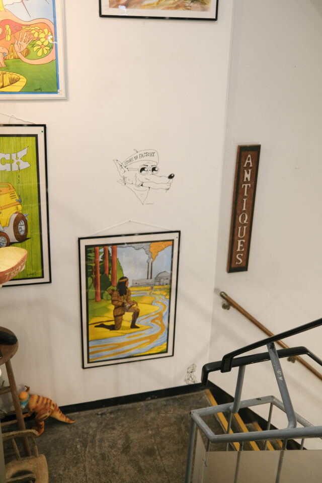 なんとその場でファクトリーの階段の壁面にイラストを残していってくれたりもしました。