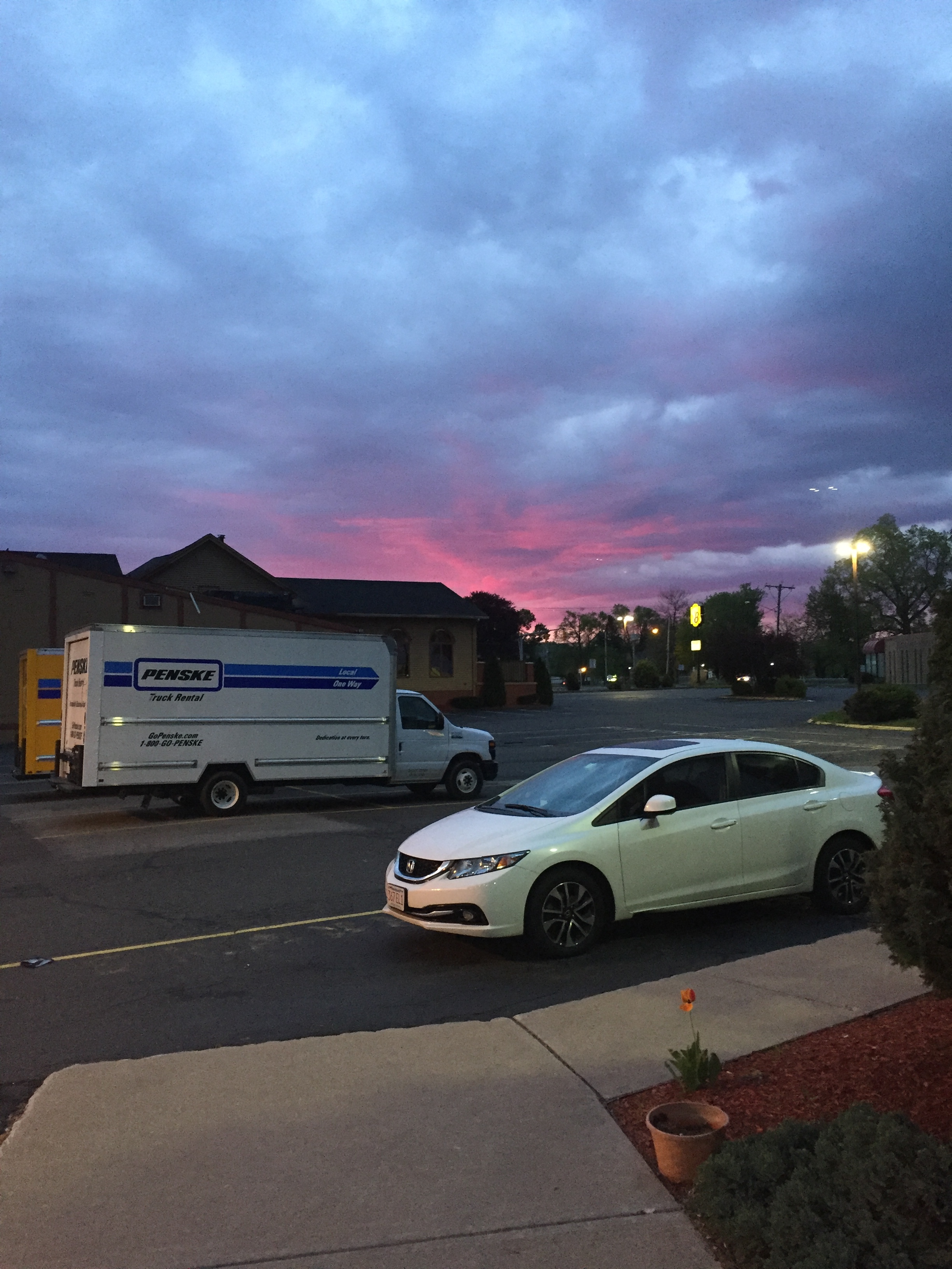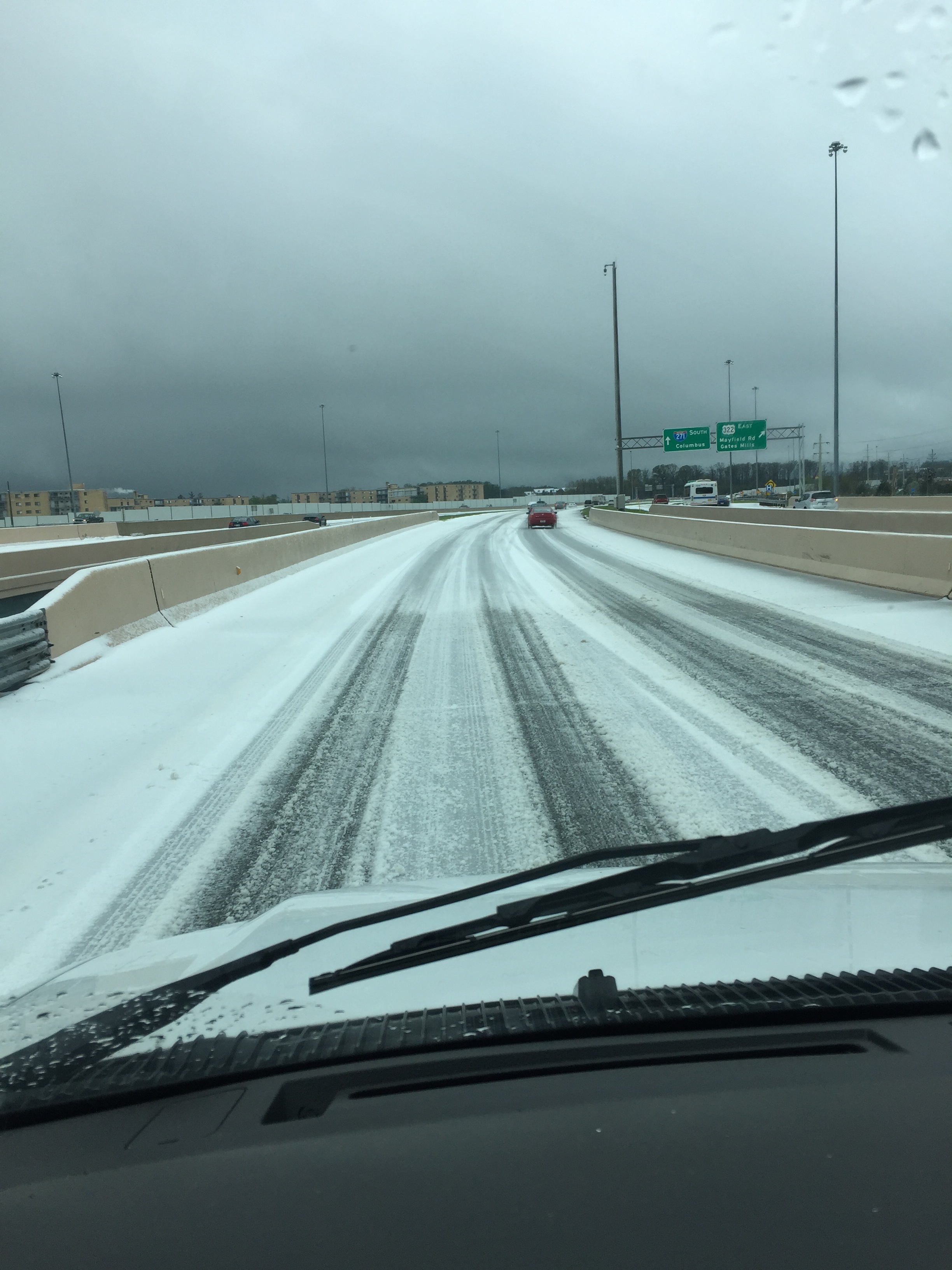 移動中、まさかの季節外れの大雪。事故に遭わないかとドキドキしながら運転しました。
