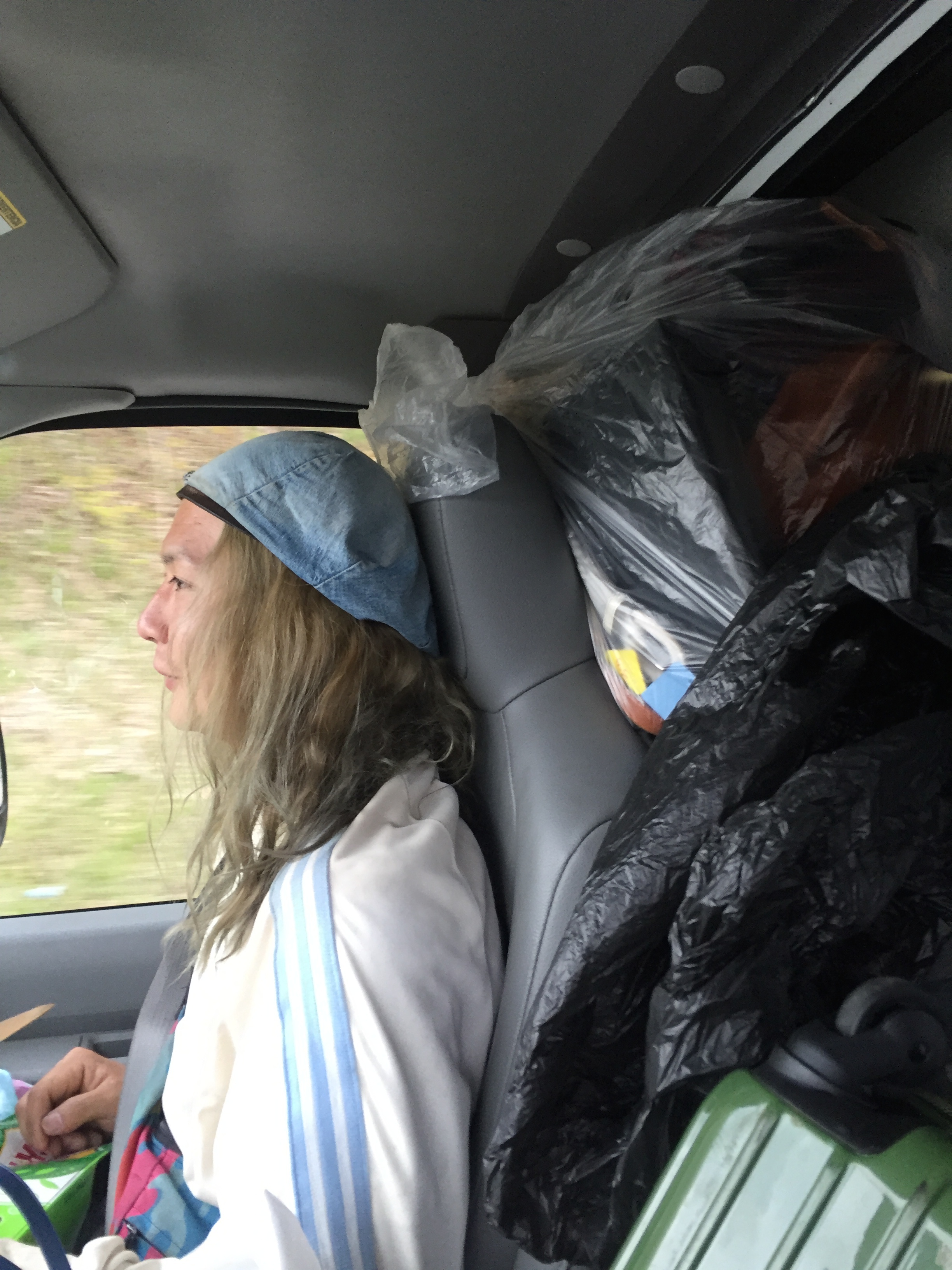 目的地荷物向かう途中途中で買い付けているうちに、遂には荷台には載せれなくなってしまい、運転席にも荷物が満杯です。