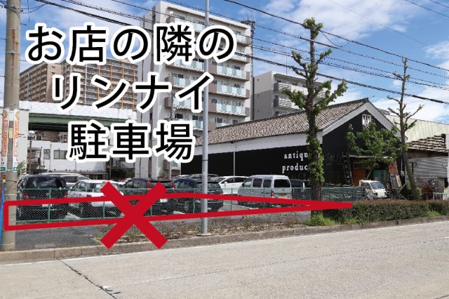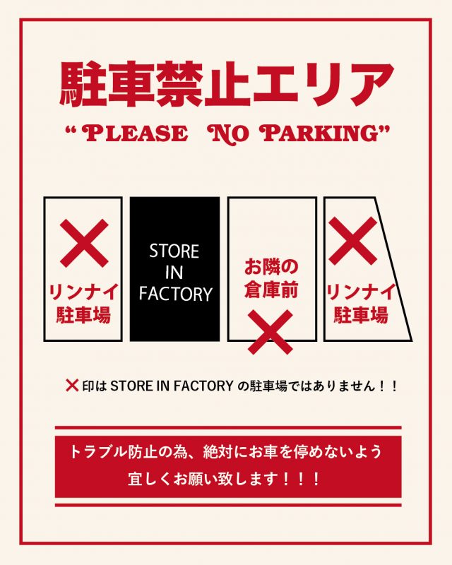 STORE IN FACTORYの建物のすぐ隣の駐車場は、当店の駐車場ではありません。