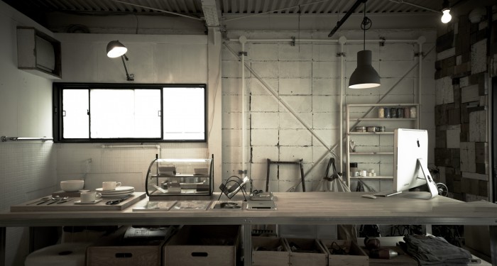 名古屋市北区にあるお店 ” 尼ケ坂 ” さんのオフィスのテーブル、本棚を製作させていただきました。