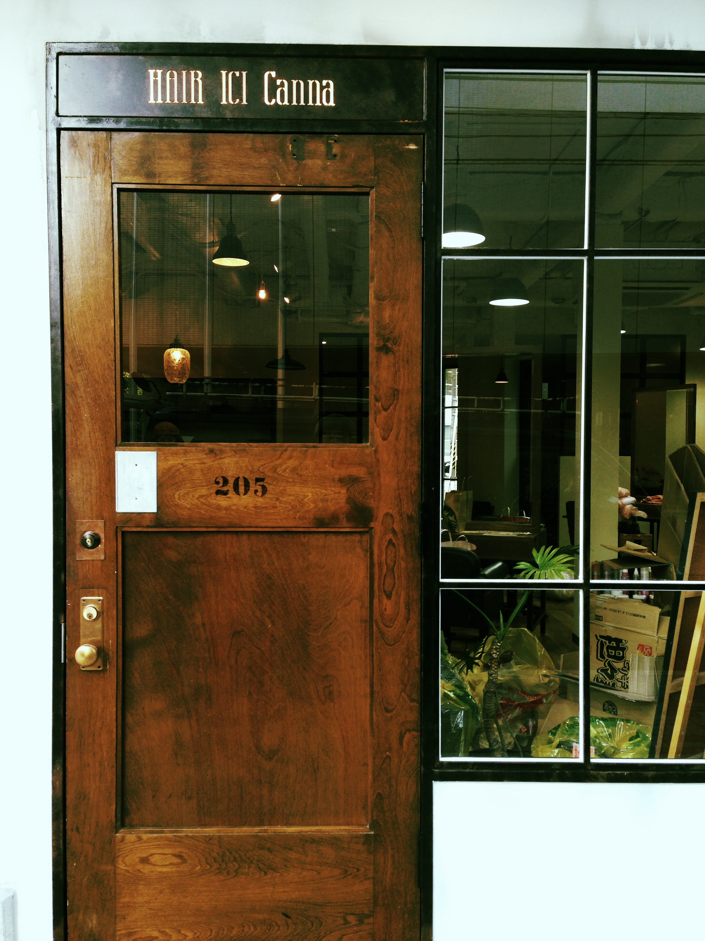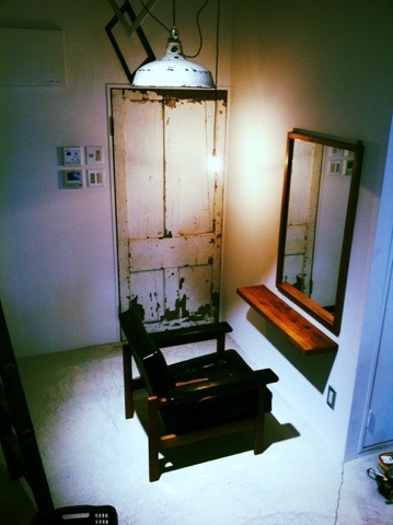 栄5丁目にできた美容室 ” COQUIN ” さん。アメリカの建具に開口をあけ、セット面の鏡を製作させていただきました。