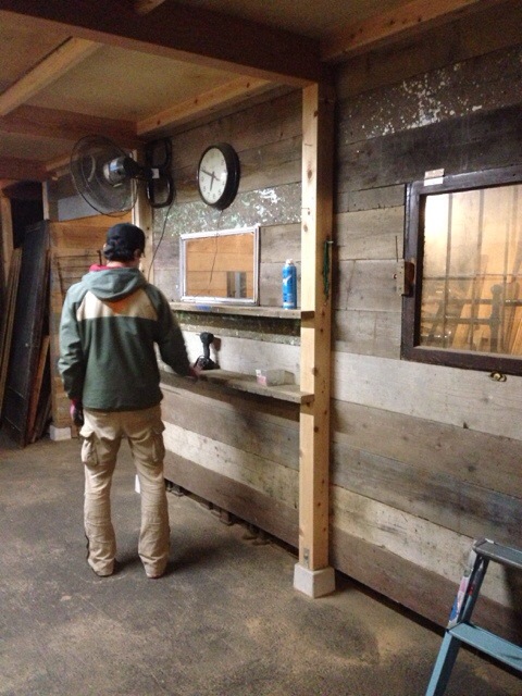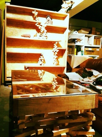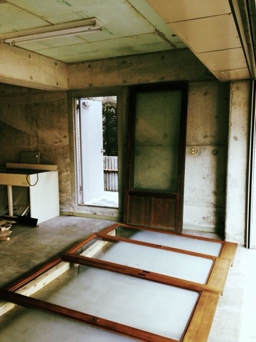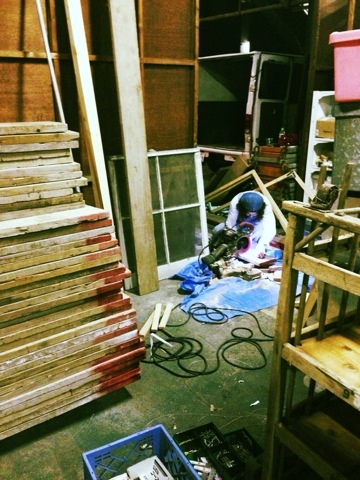 各務原のinaくんの個展から下げて来た小屋をファクトリーの中央に立て、バックヤードや