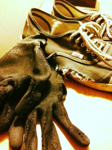 気づけば、くつもてぶくろも、、、いつもボロボになっています。。