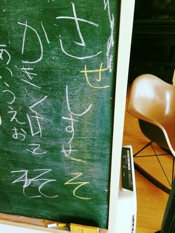 いつのまにか黒板には、僕や奥さんの書いた落書きではなくて、市丸の書いたひらがなが書かれていました。