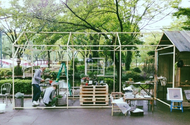 名古屋のクリエイターズマーケットに参加。小屋の中では、お店のロゴマークなどを作ってもらっている、 ” くの じゅん “さんの映像を上映し、ファクトリーとしての新しい表現に挑戦しました。