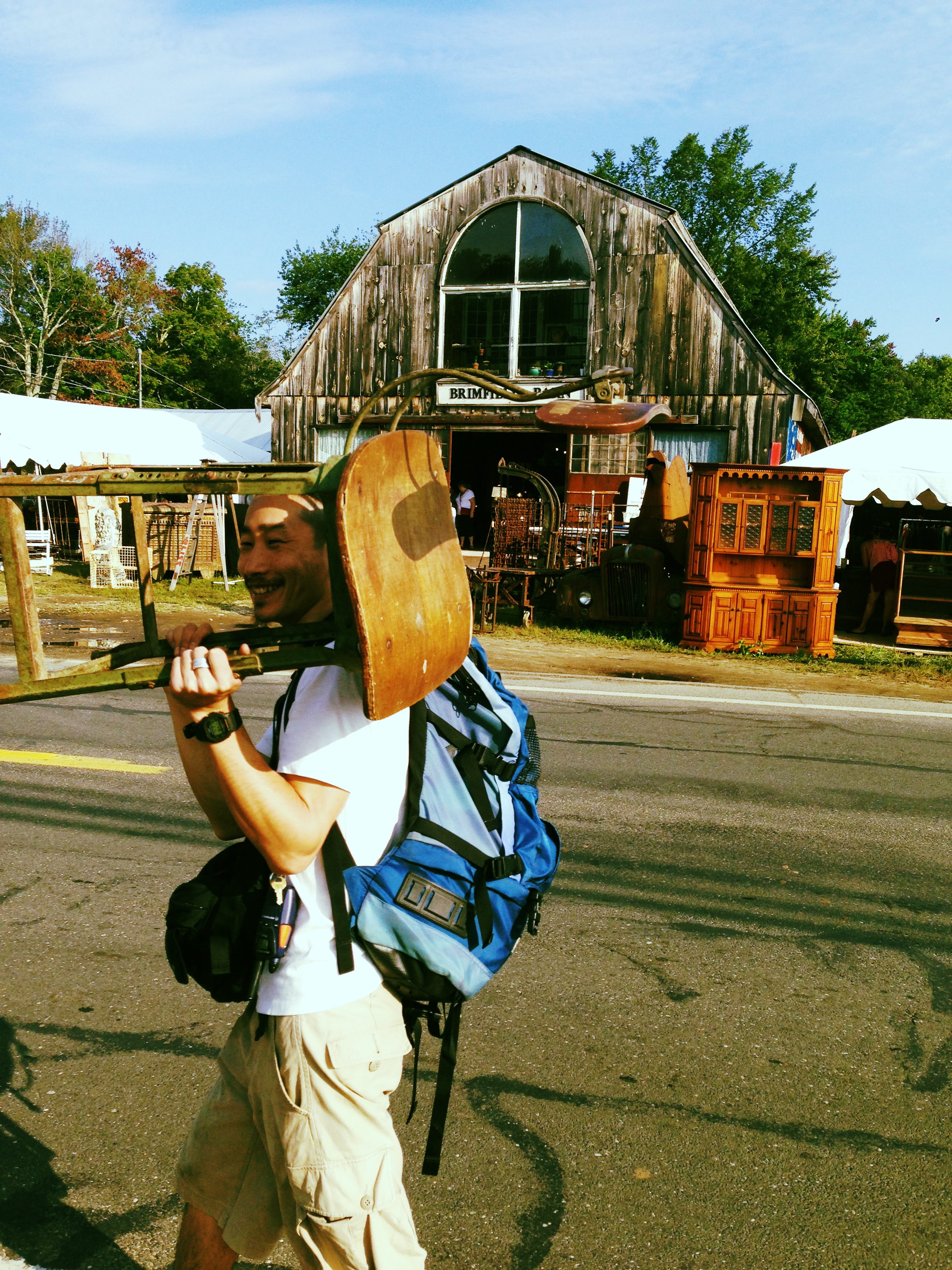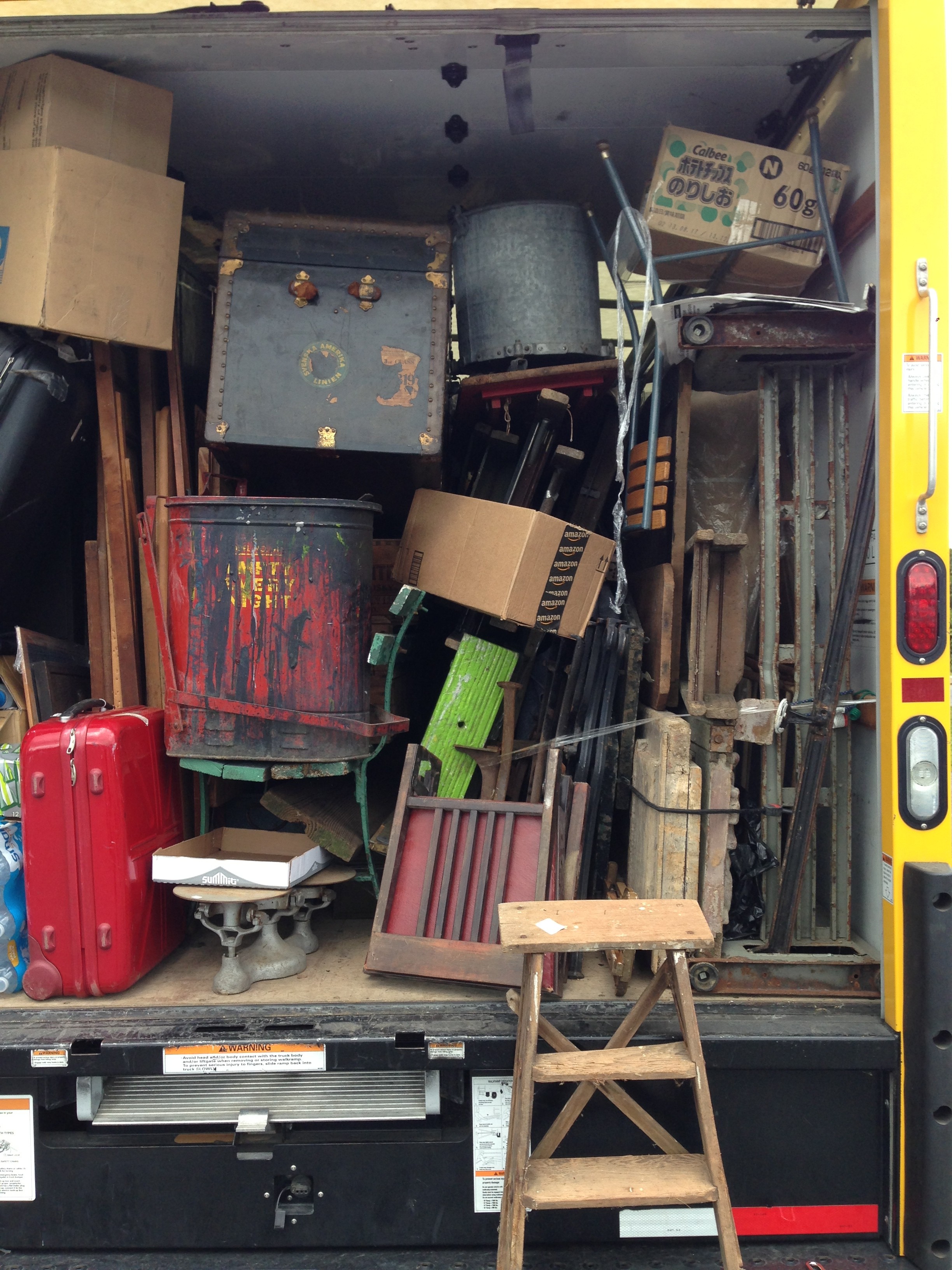 野地くんとの初めての仕入れです。解体現場から、ファクトリーにあいそうな古材や日本の古道具を譲ってもらい、ハイエースまんぱんにしてファクトリーに帰っていきました。