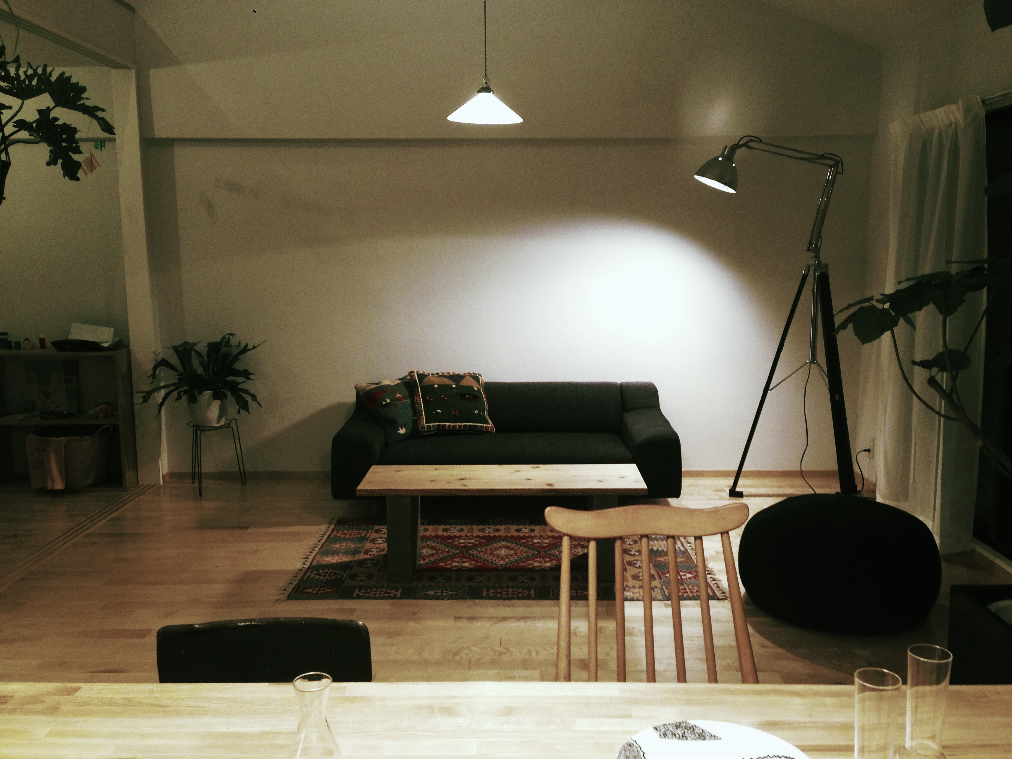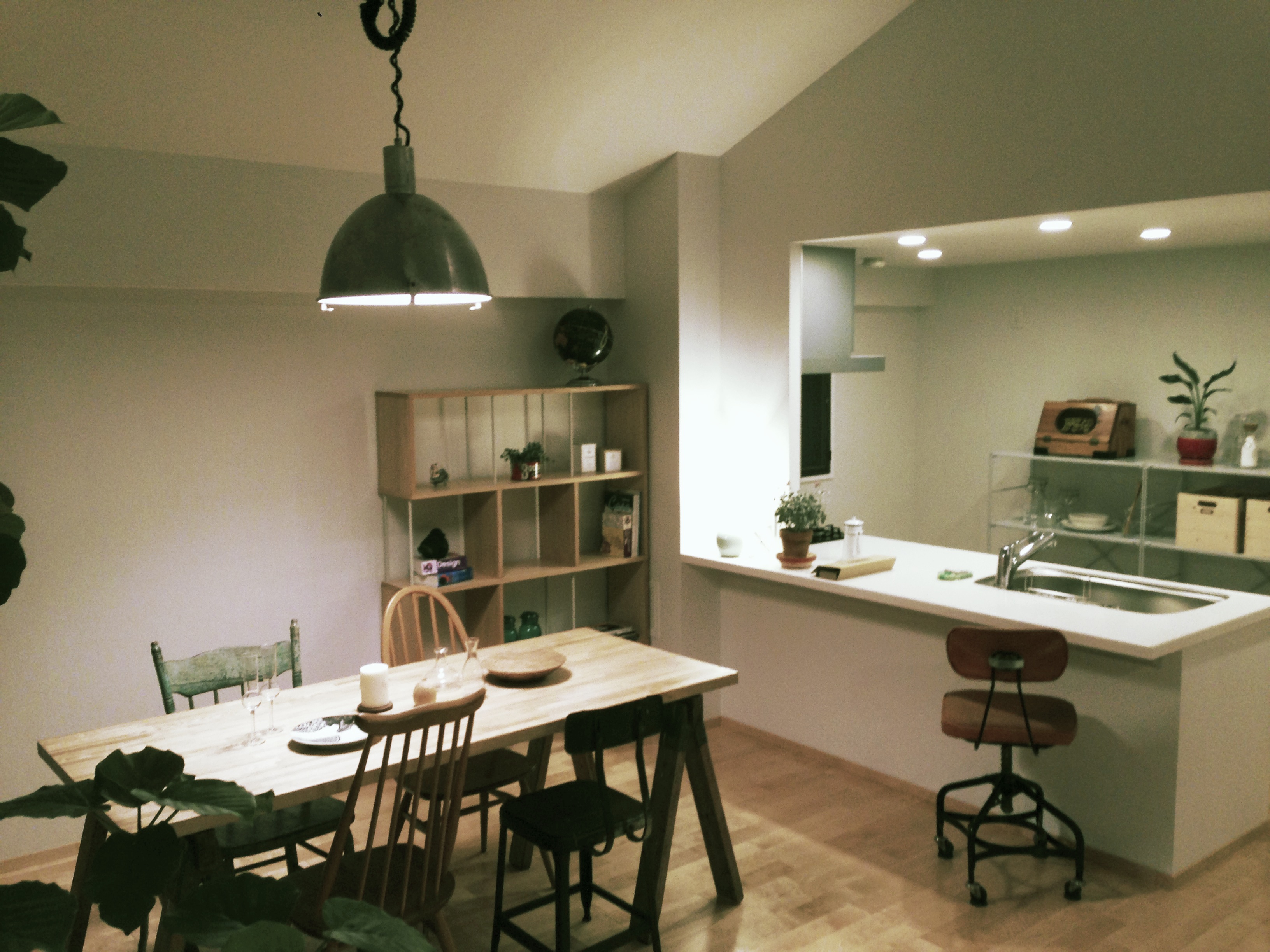 新築のご自宅の1Fにカフェを 作られているご夫婦。アメリカで買い付けて来たバタフライテーブルや、工業ライトを納品させていただきました。