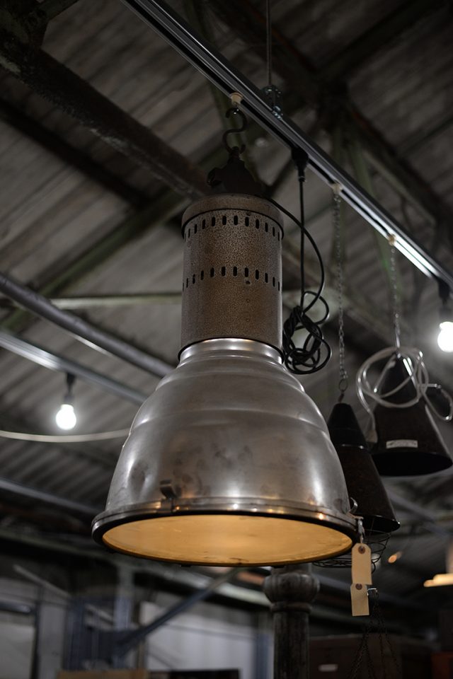 ガラスの模様が独特なドーム状のインダストリアルライト。