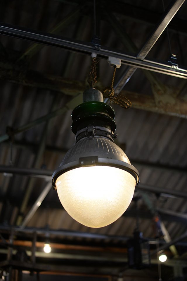 大ぶりなインダストリアルライトは天井高のあるところで