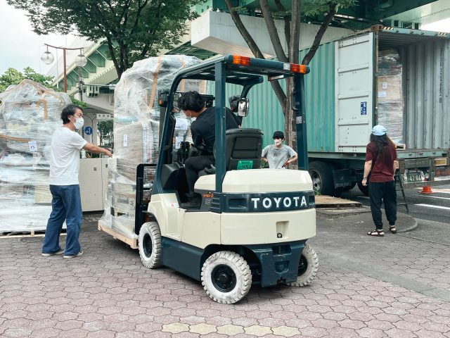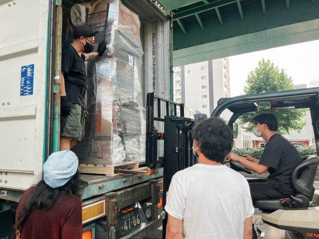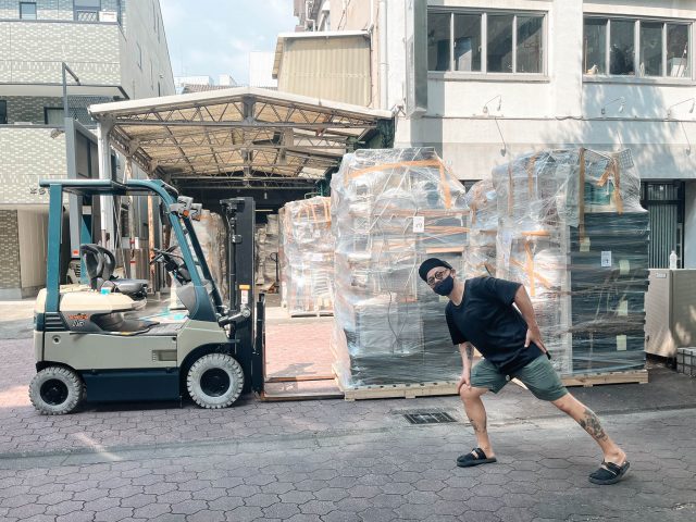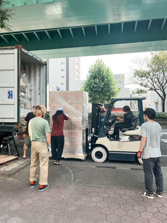 夏真っ只中、5月にオーナーの佳希さんとバイヤーの野地さんたちが買い付けに行っていた、アメリカ便の買い付け商品コンテナが届きました。