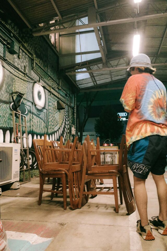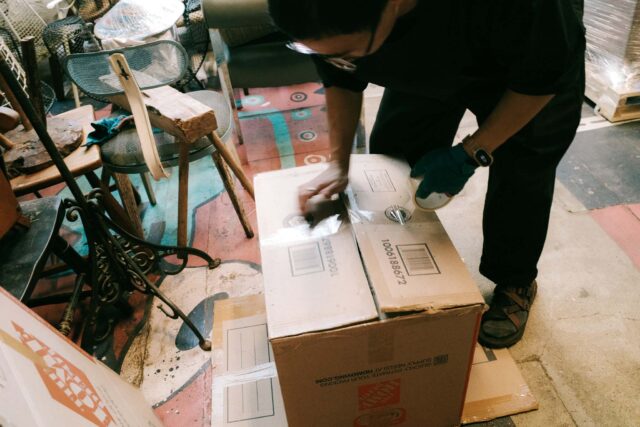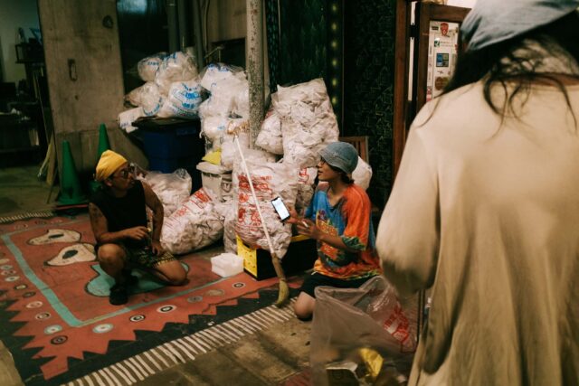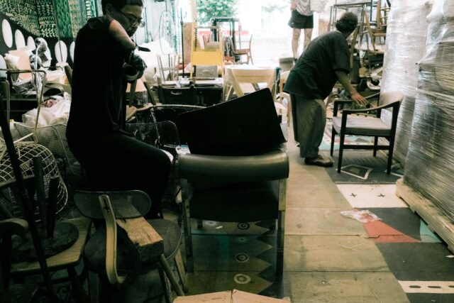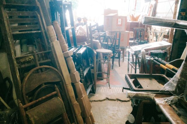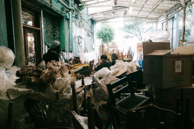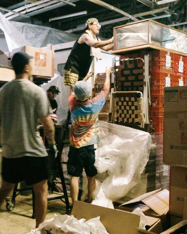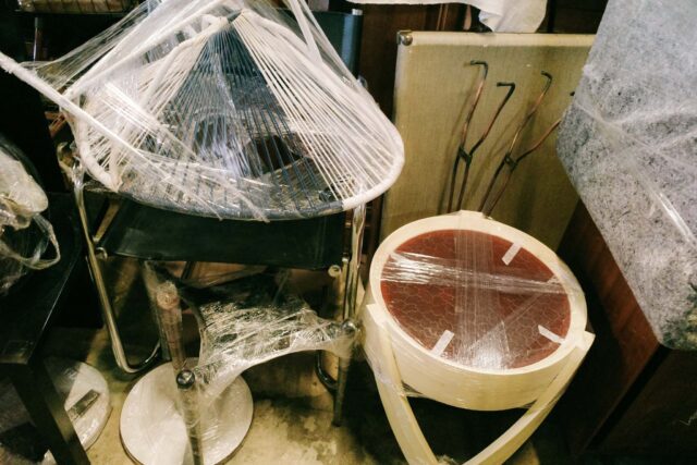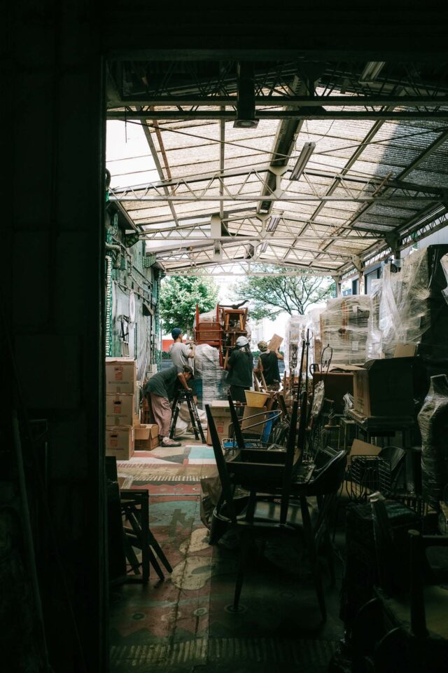 デバンの日は積み下ろしたばかりの家具に囲まれながらの休憩の光景が。