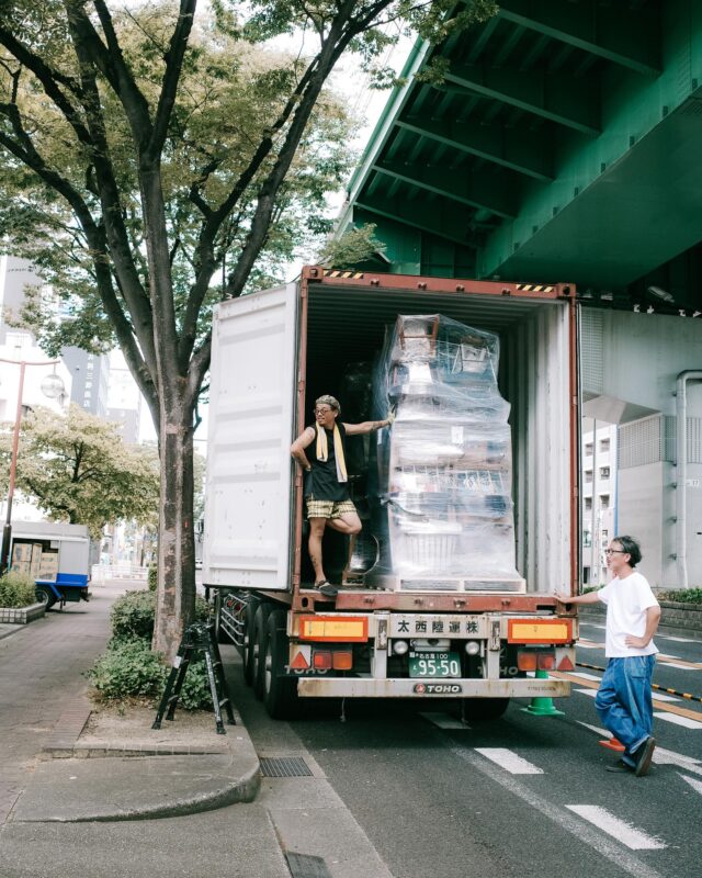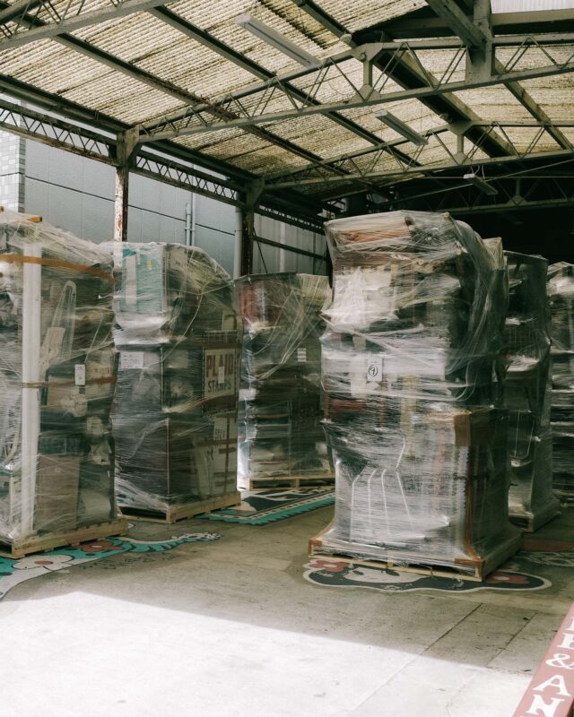 コンテナ入荷の日はいつもお店の駐車場が商品ですごいことに。