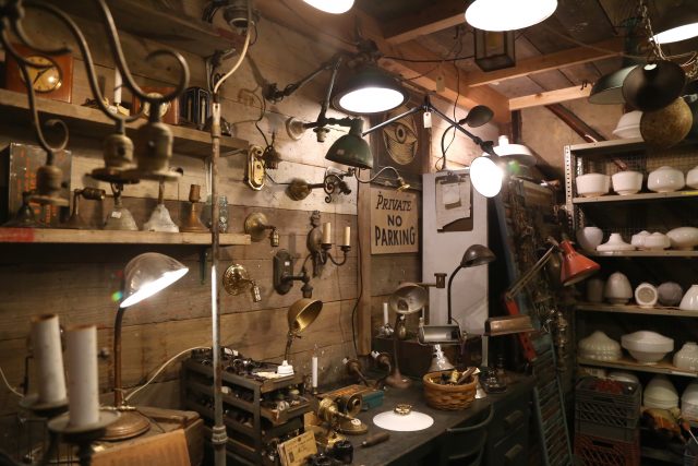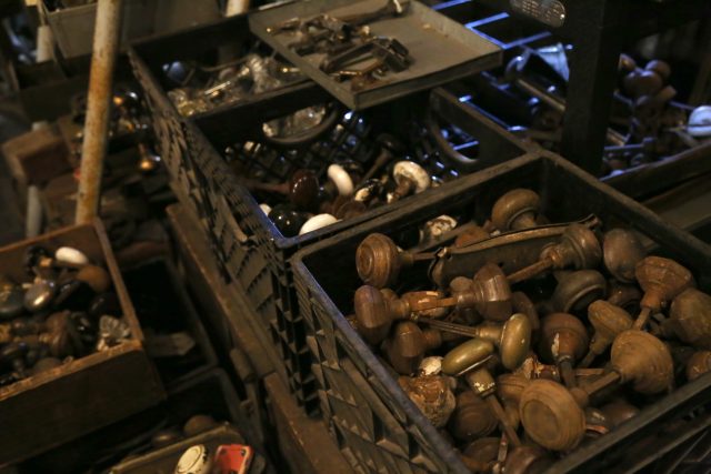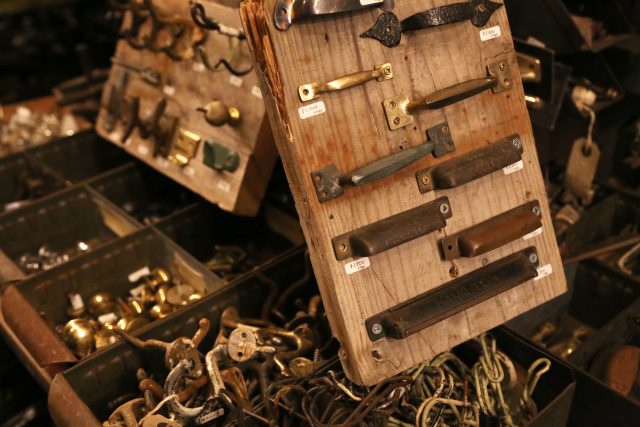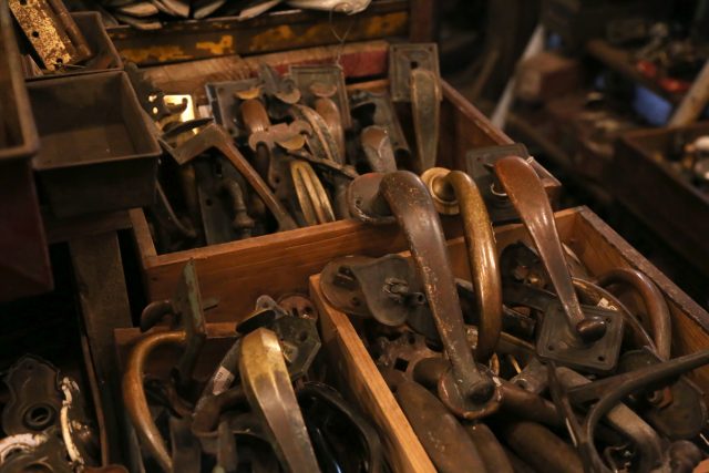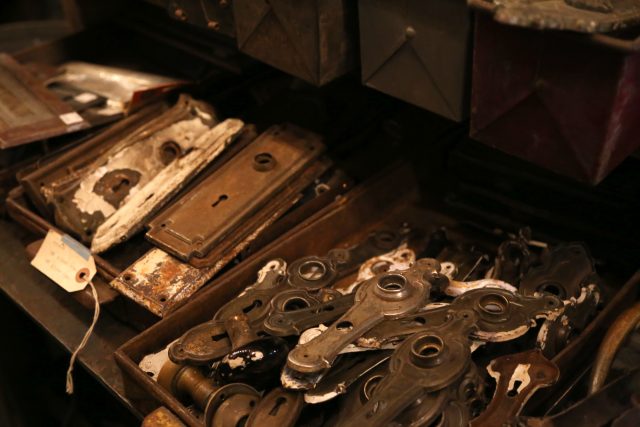 ドアハンドルやドアノブ、フックなどのアンティーク ハードウェアコーナー。